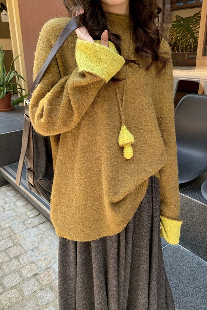 Color-Block Mock Neck Loose Lazy-Style Knit Sweater