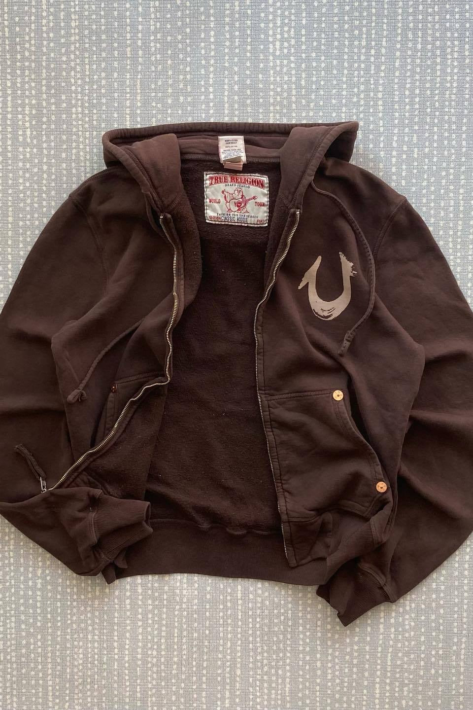 Vintage Graphic Riveted Zipper Hoodie