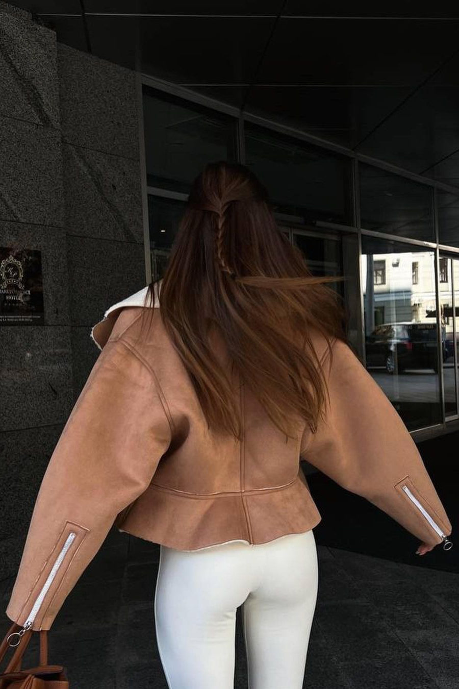 Chic Odd Zip Leather Fur Pieced Coat