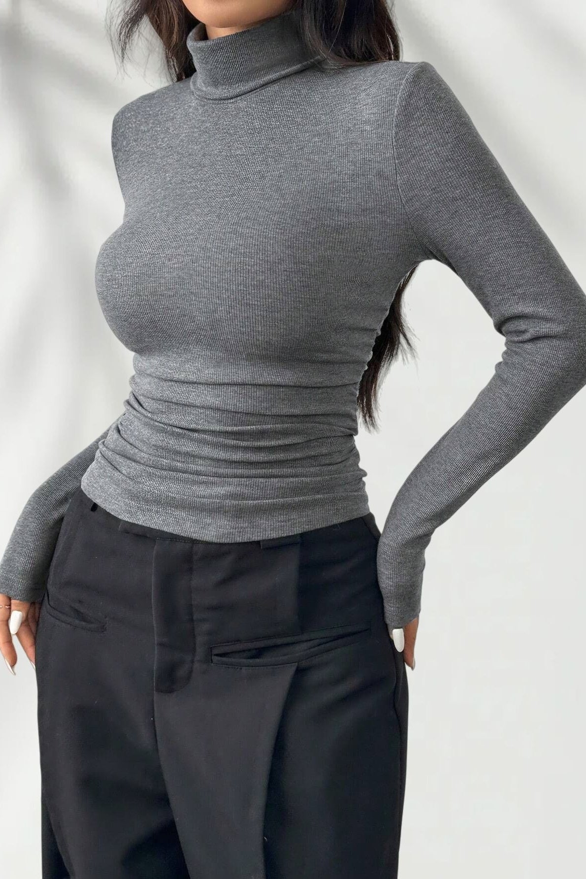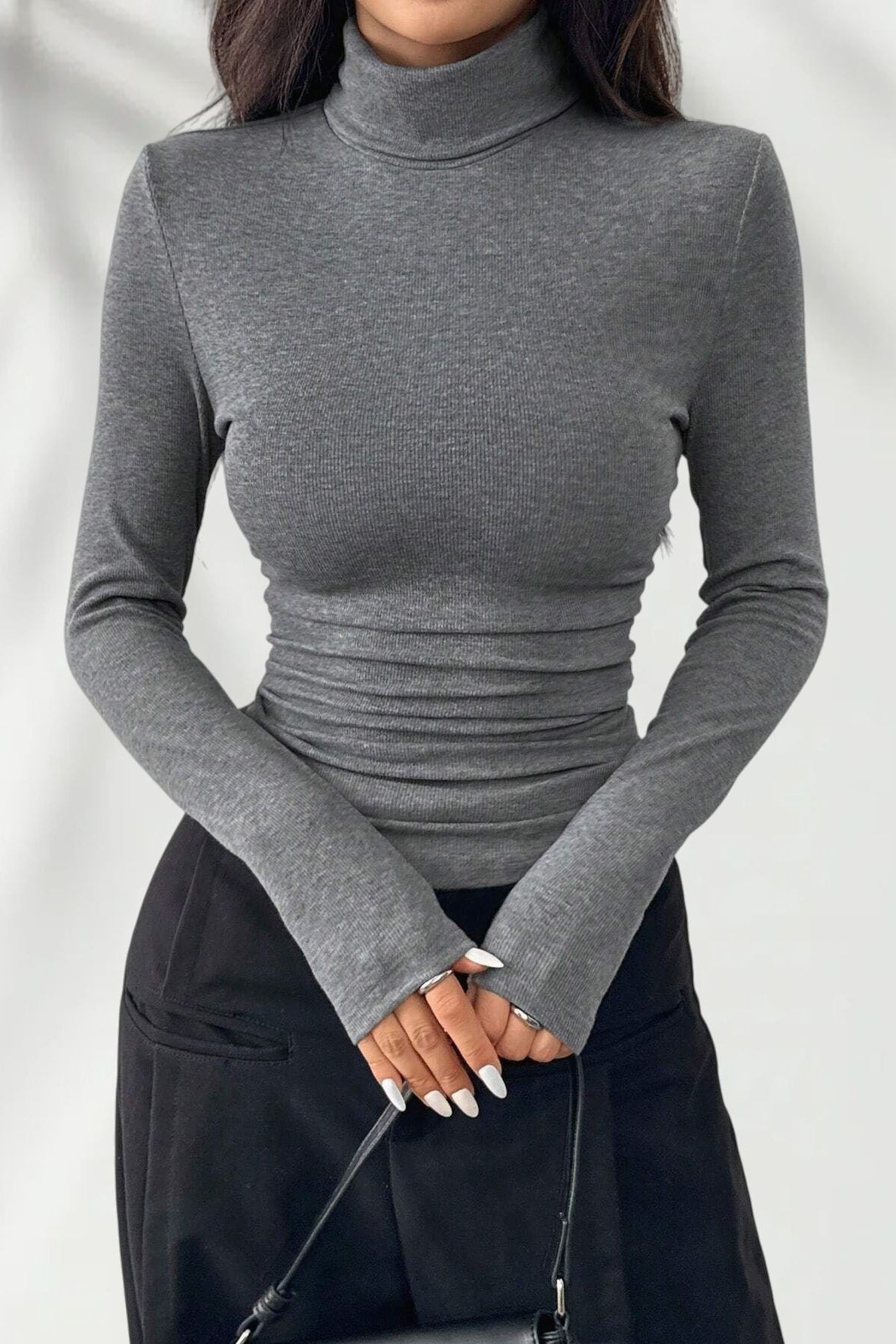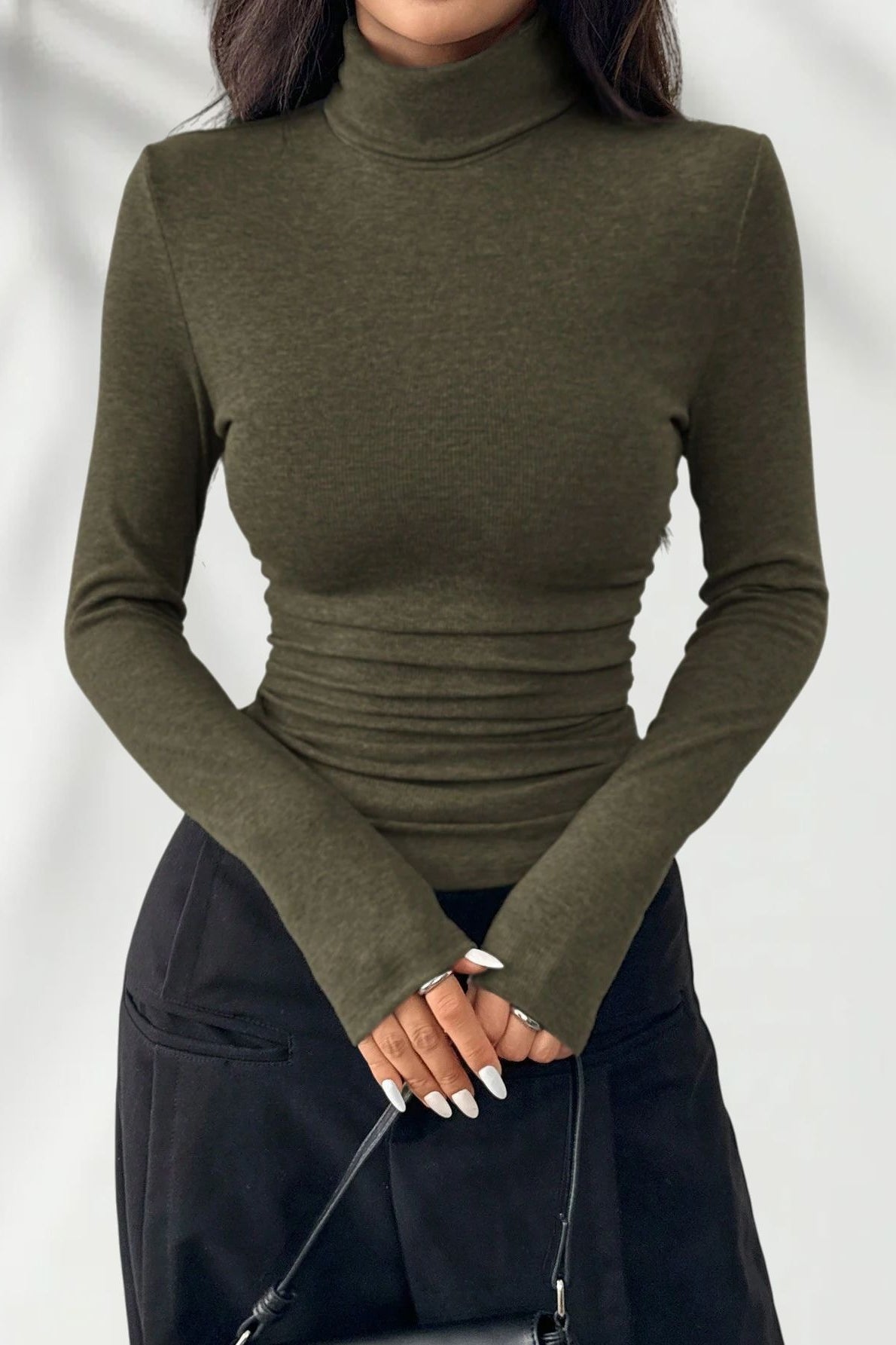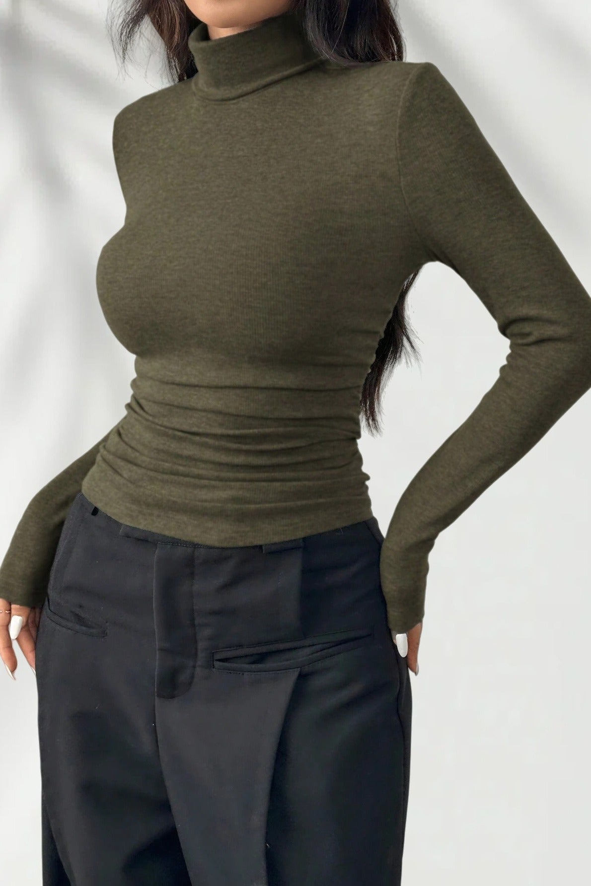Elegant Fitted Long Sleeve Turtle Neck Knit Top