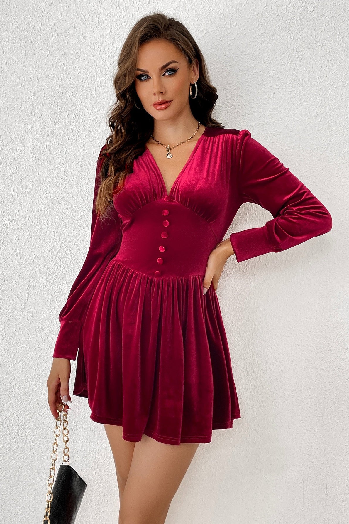 • Details: Velvet, V-Neck, Buttons