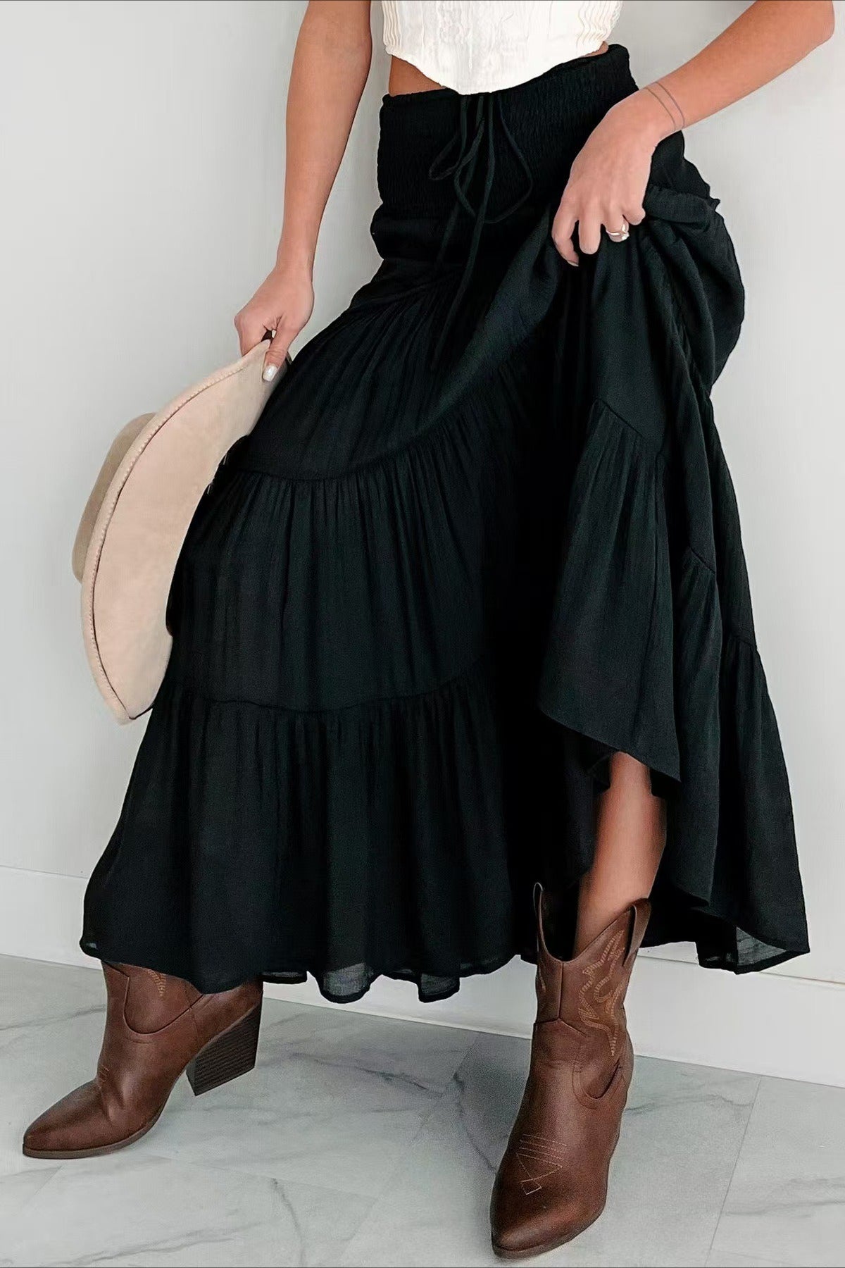 Boho Chic High Waisted Contrast Drawstring A Line Maxi Skirt