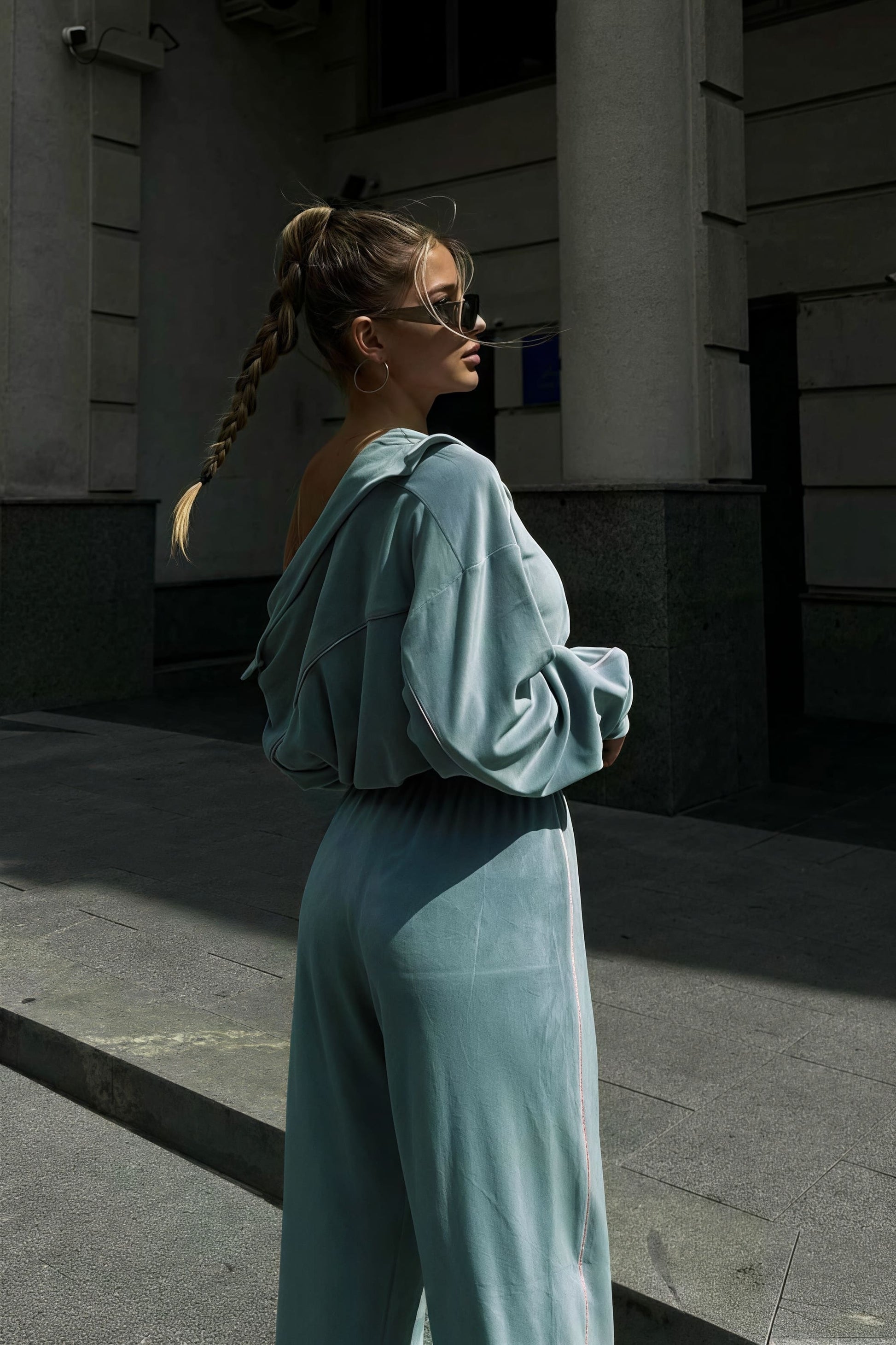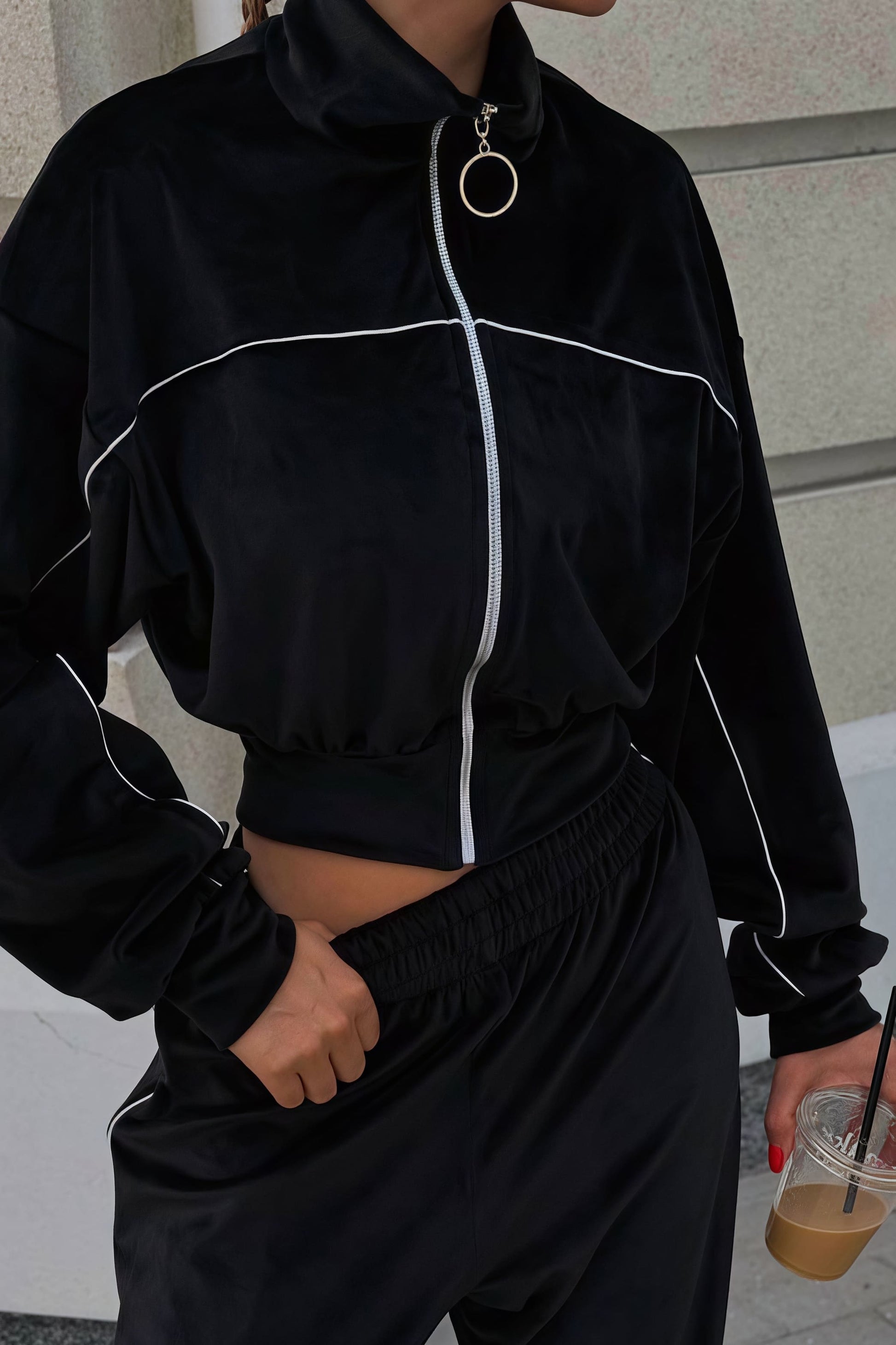 Athletic Velvet Collar Zipper Long Sleeve Two Piece Set