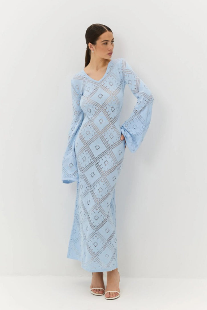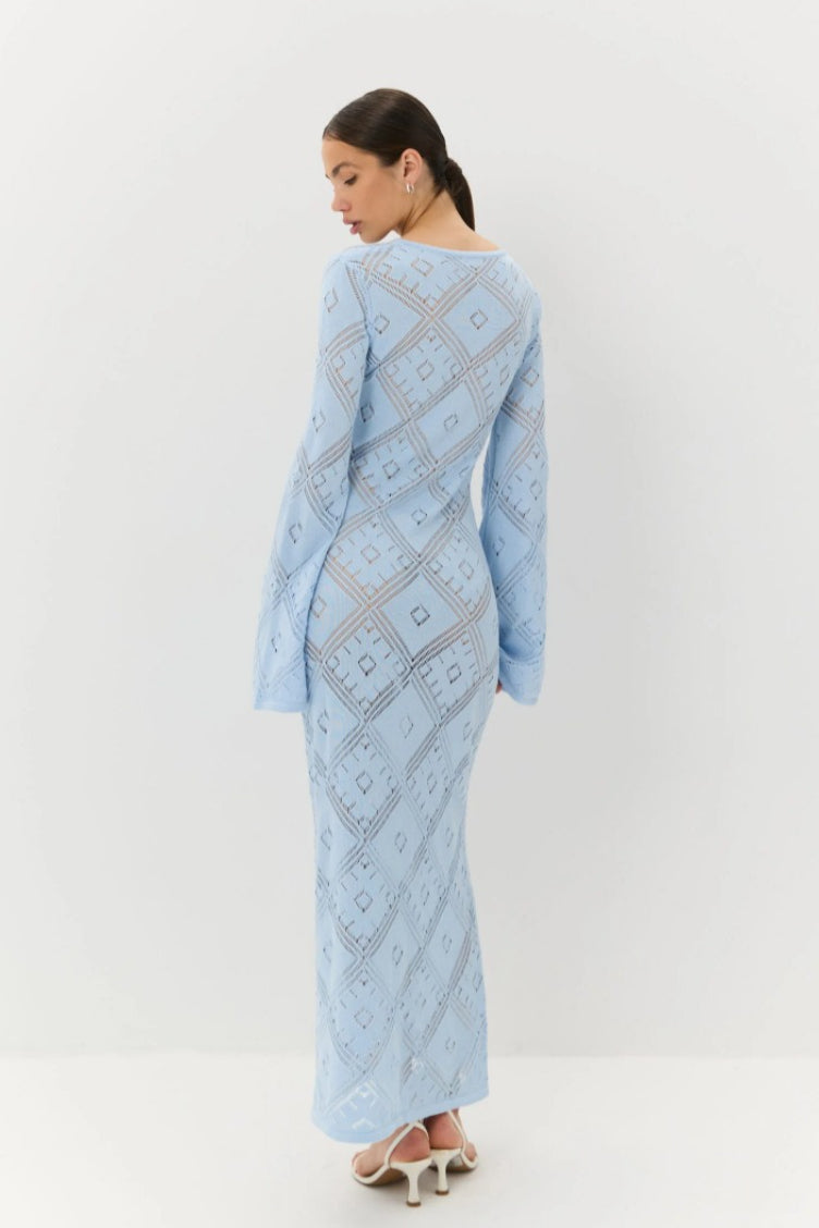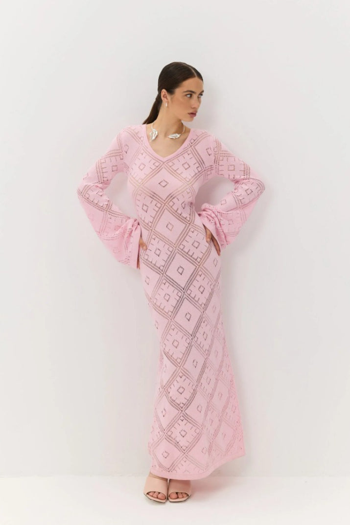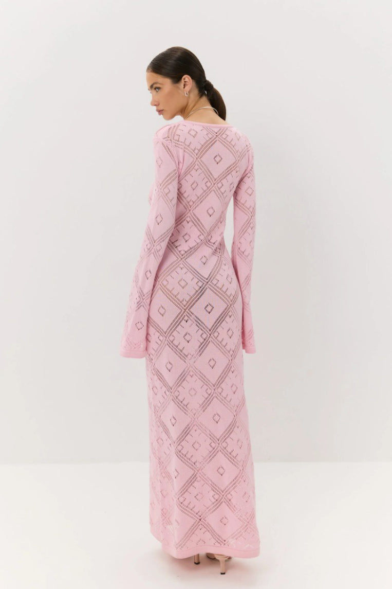 Knit Argyle Jacquard Long Sleeve Maxi Dress