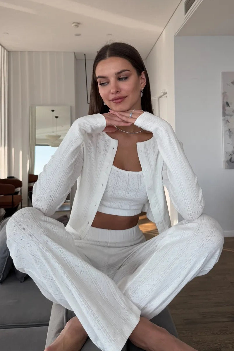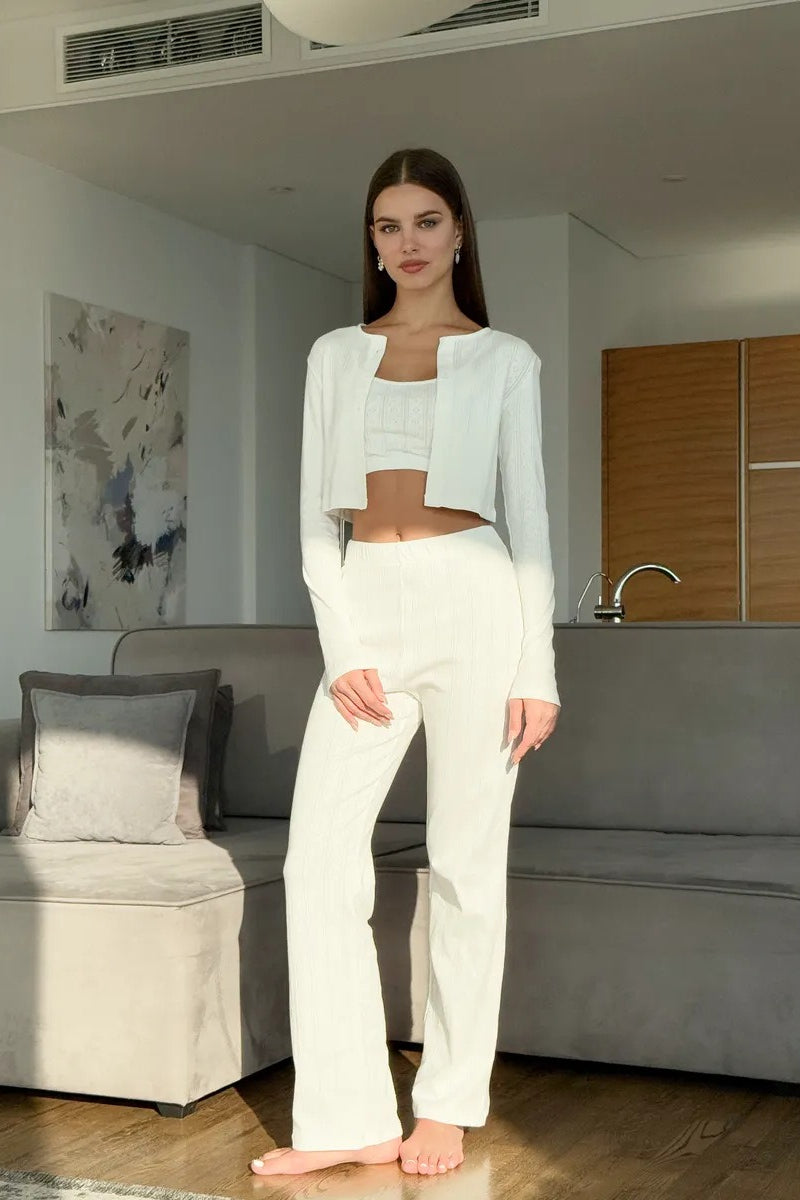 | Size | Bust | Cardigan Length | Sleeve Length | Elastic Length | Hips | Pants Length | ||||||