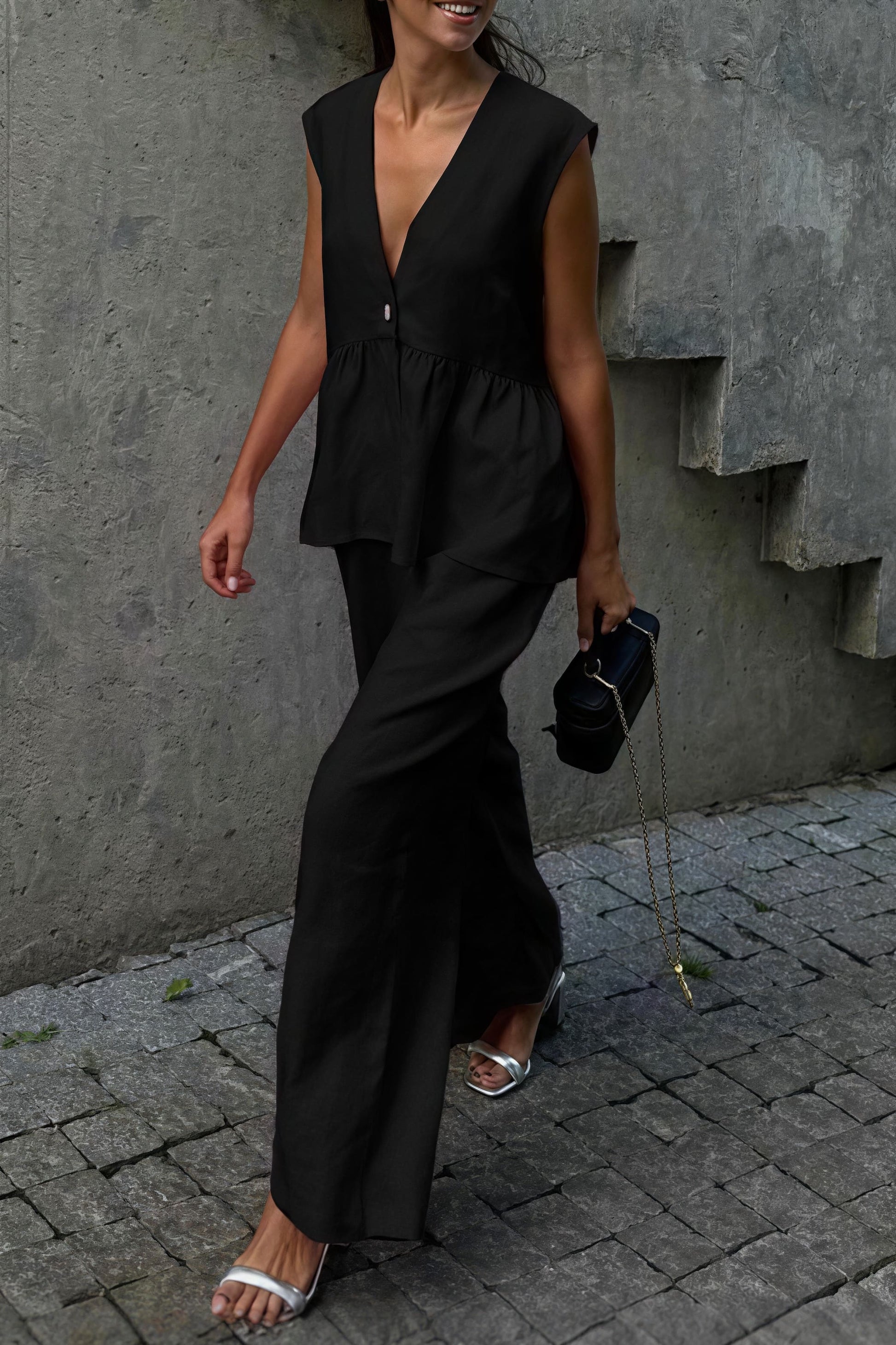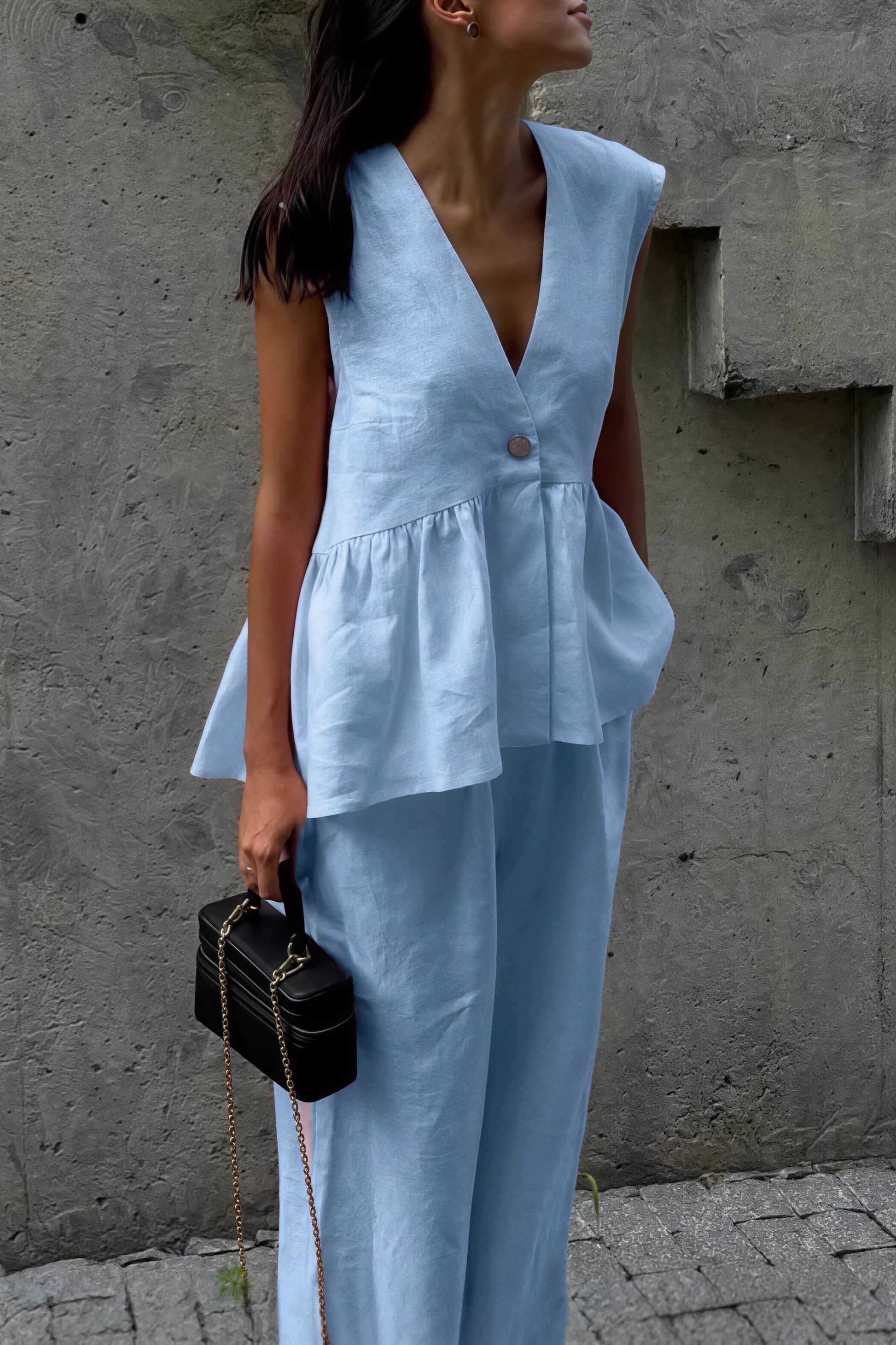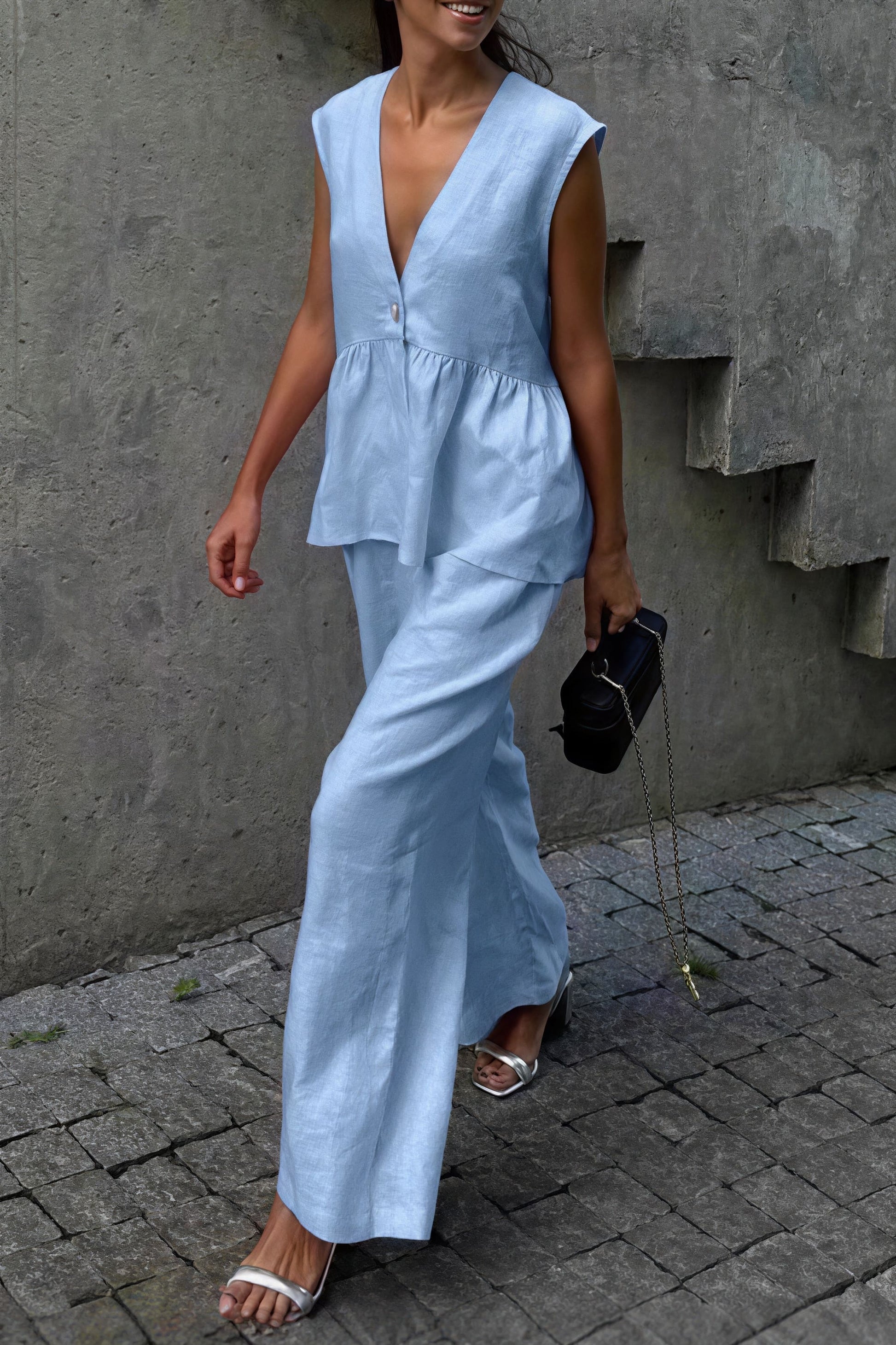 Romantic Cotton V Neck Sleeveless Vest Pants Two Piece Set