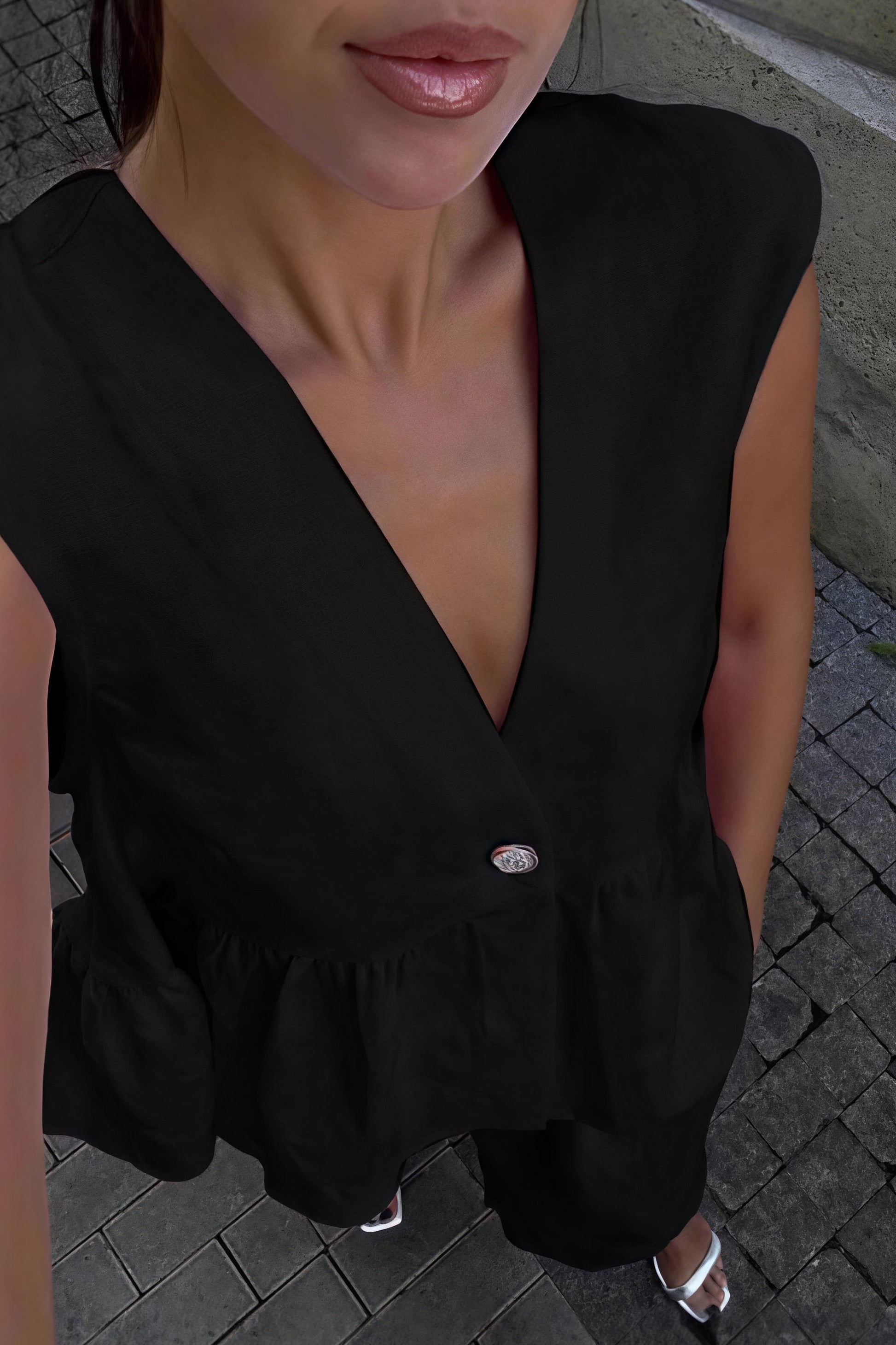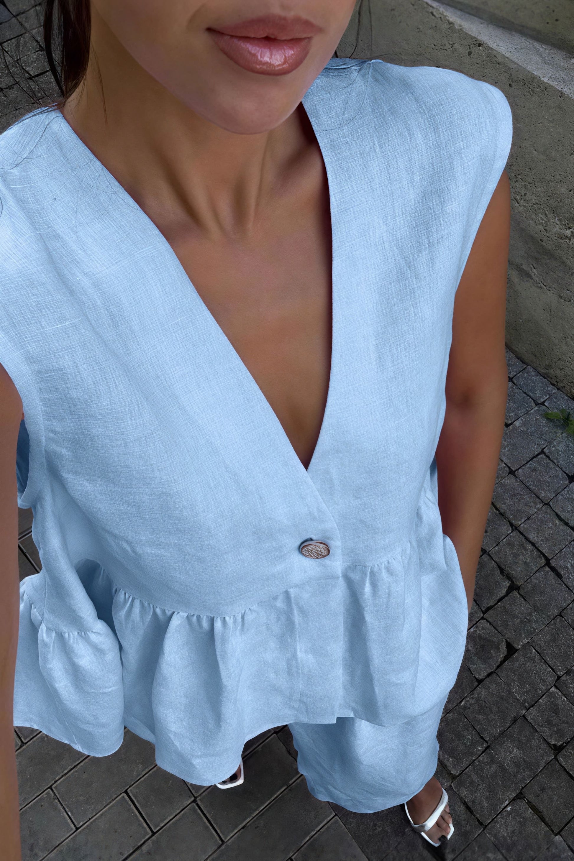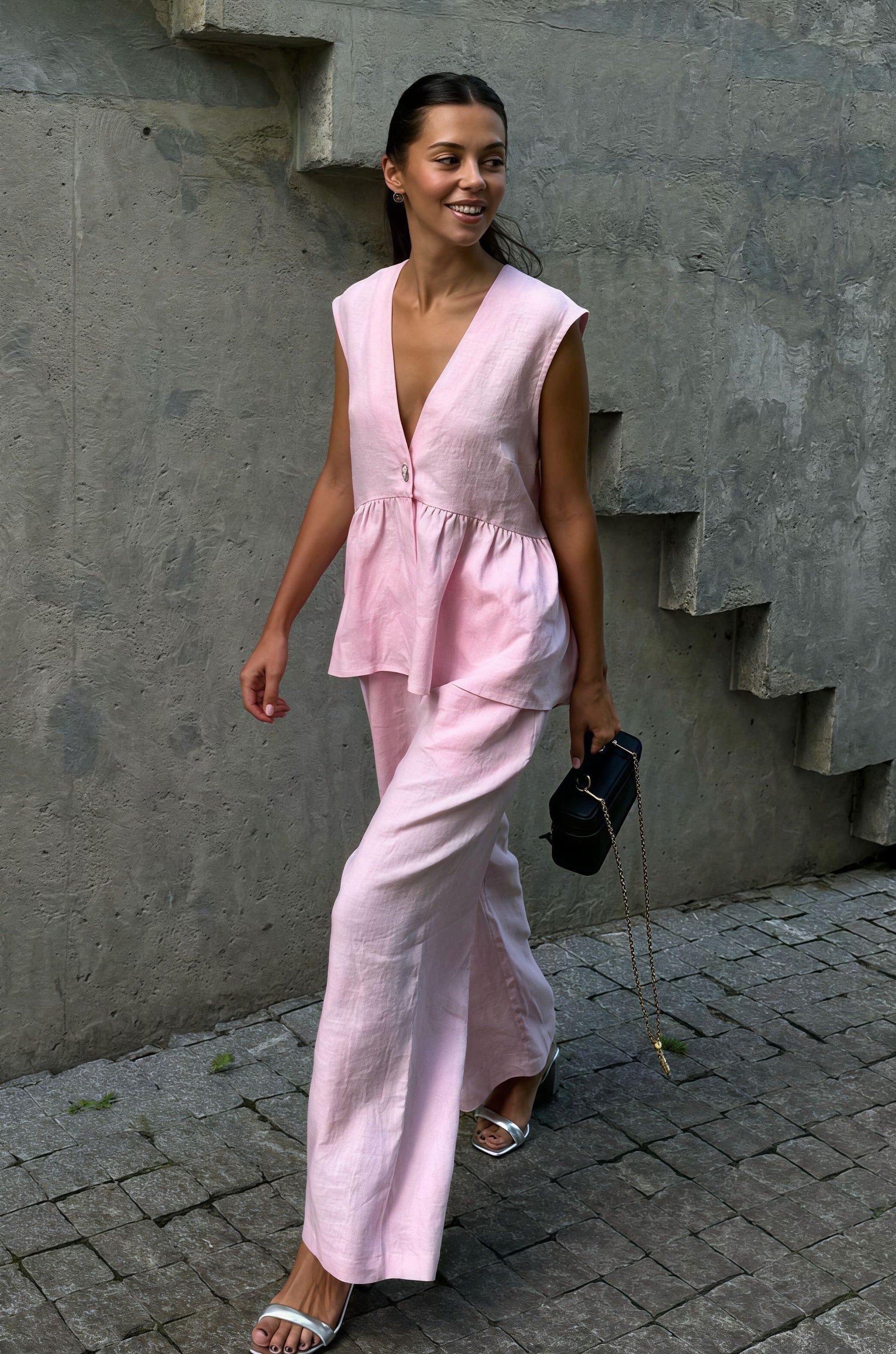 Romantic Cotton V Neck Sleeveless Vest Pants Two Piece Set