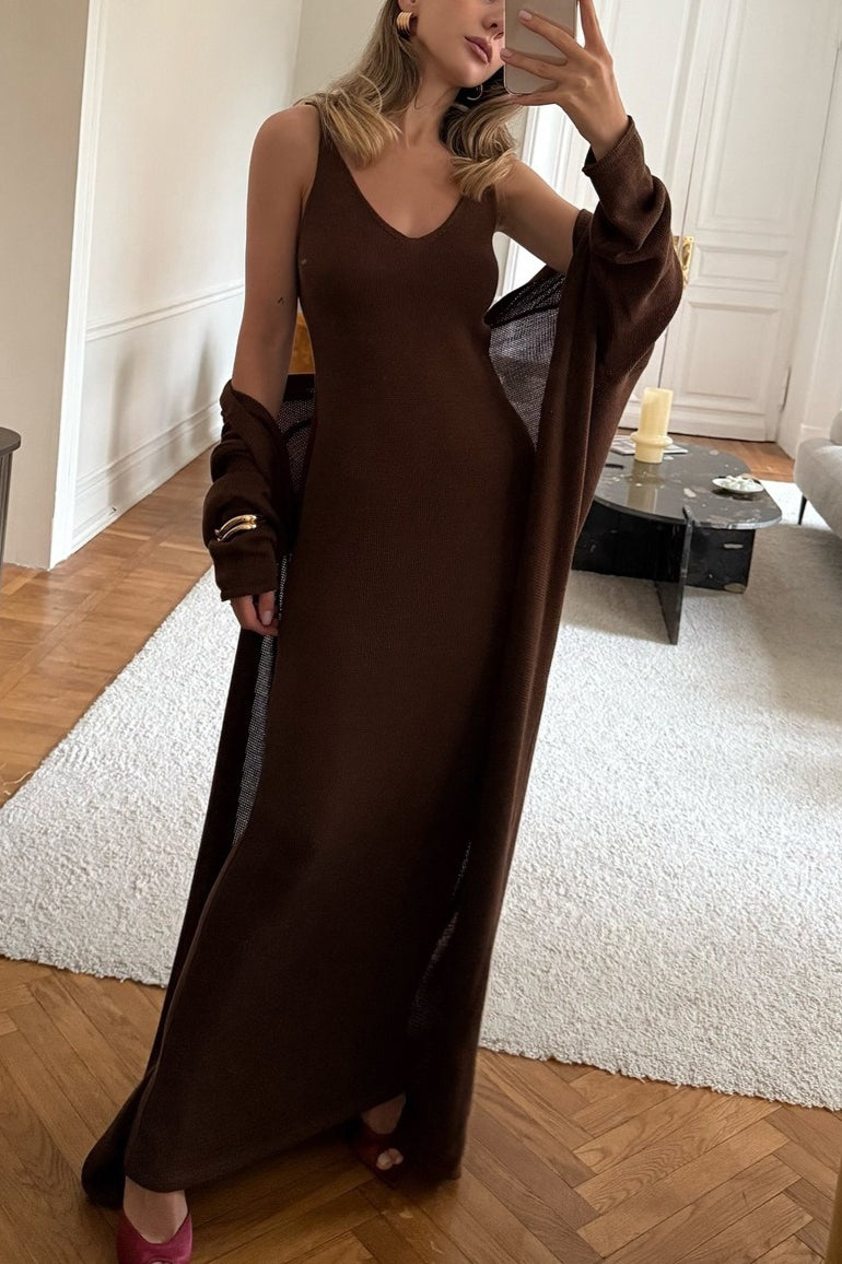 Solid V Neck Cotton Knit Bodycon Two Piece Set