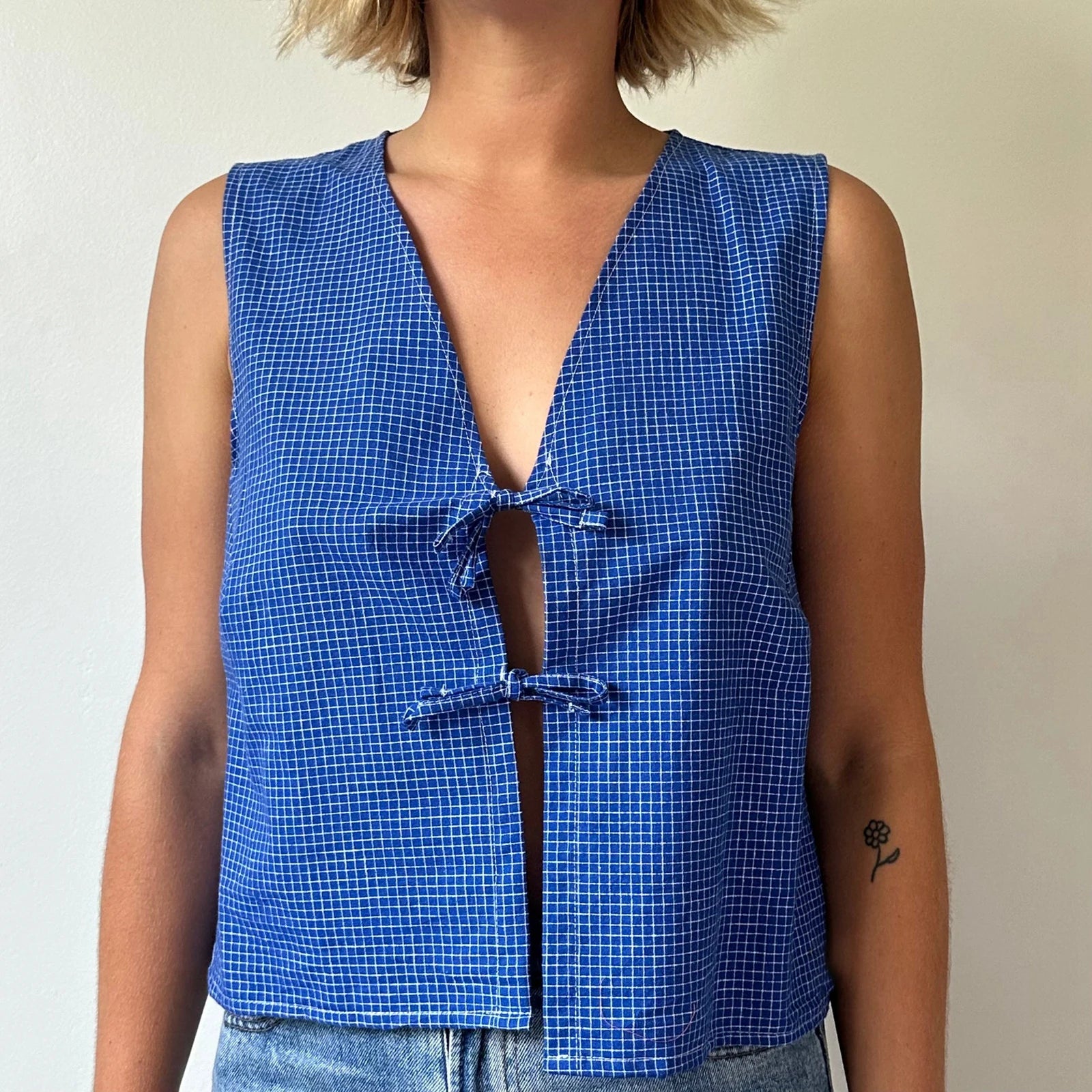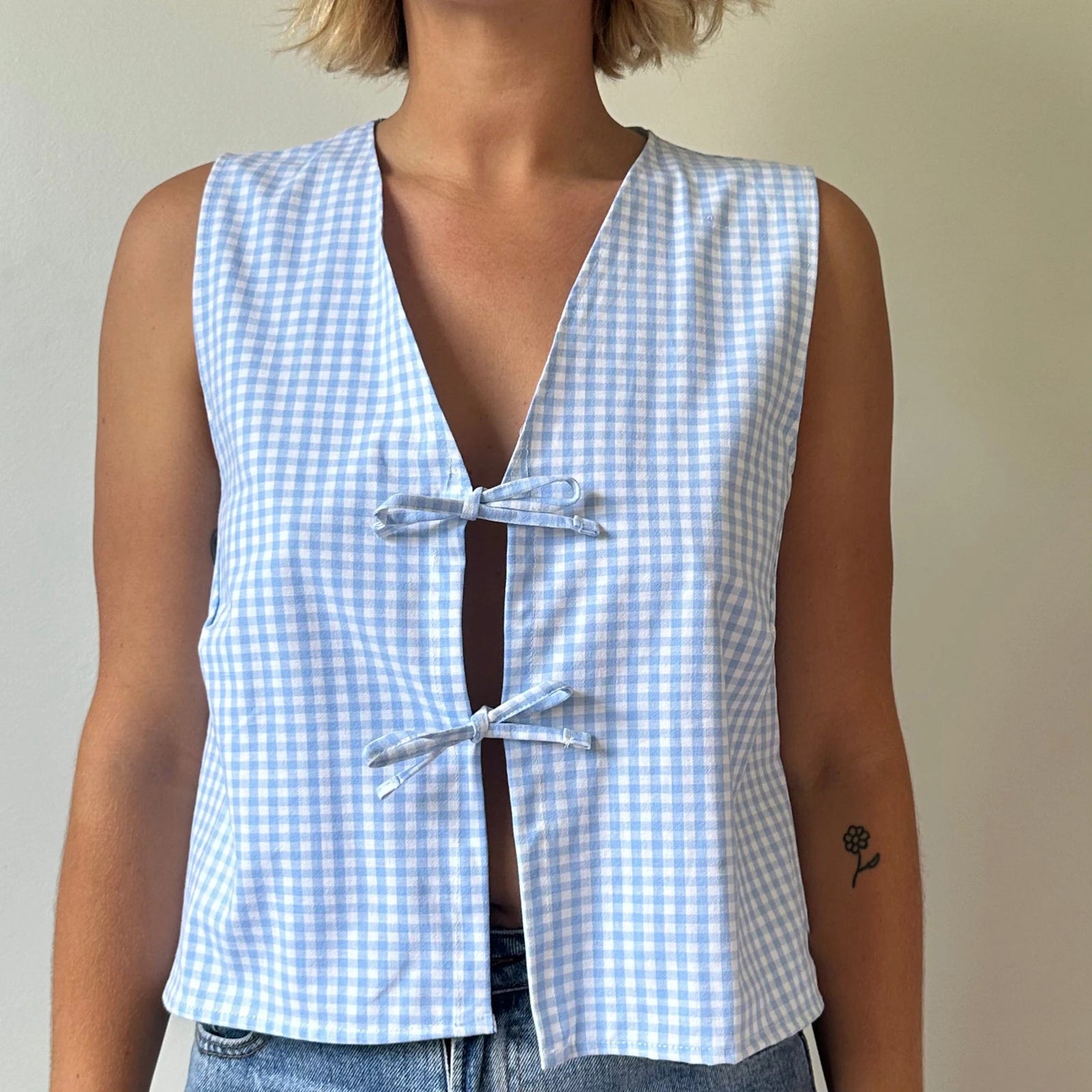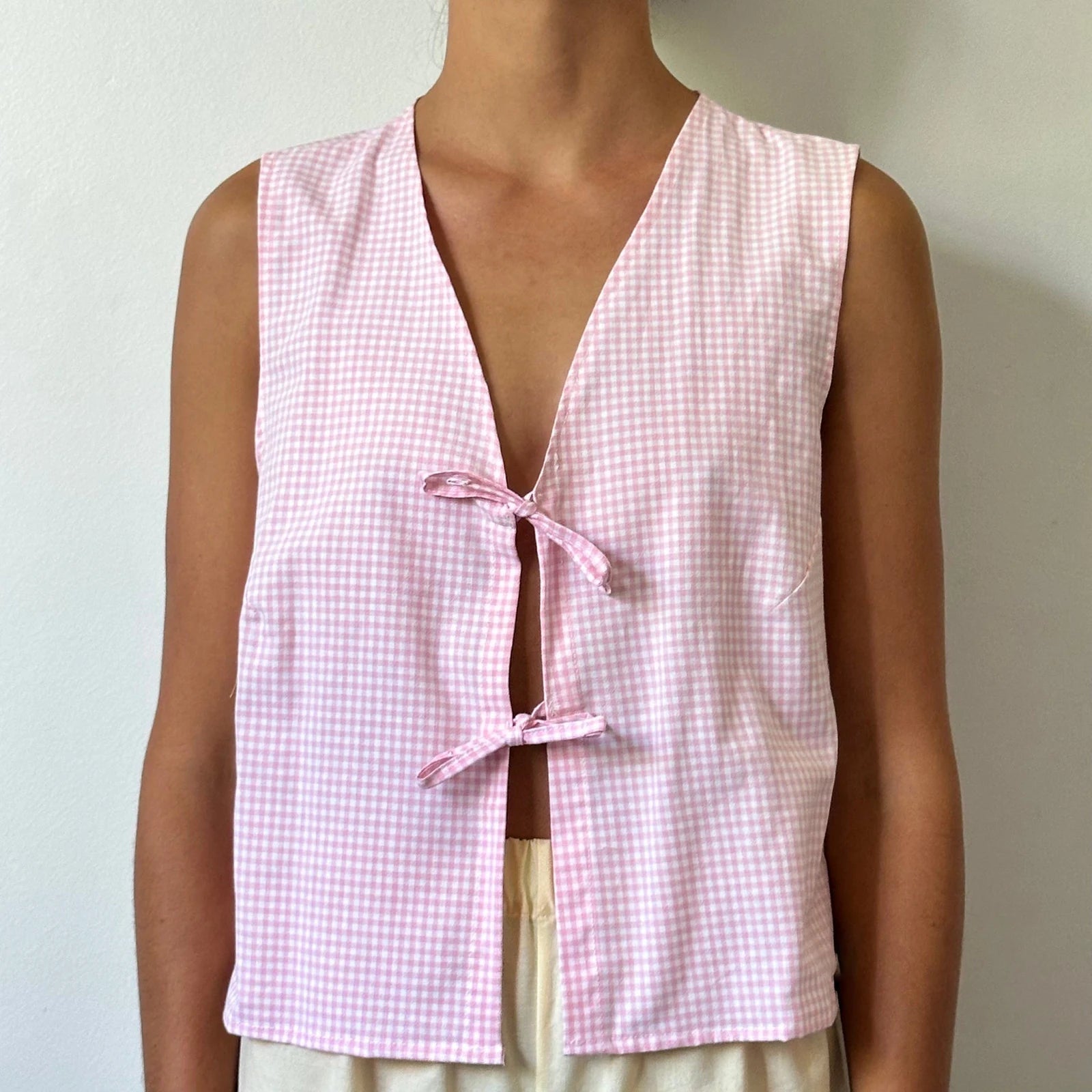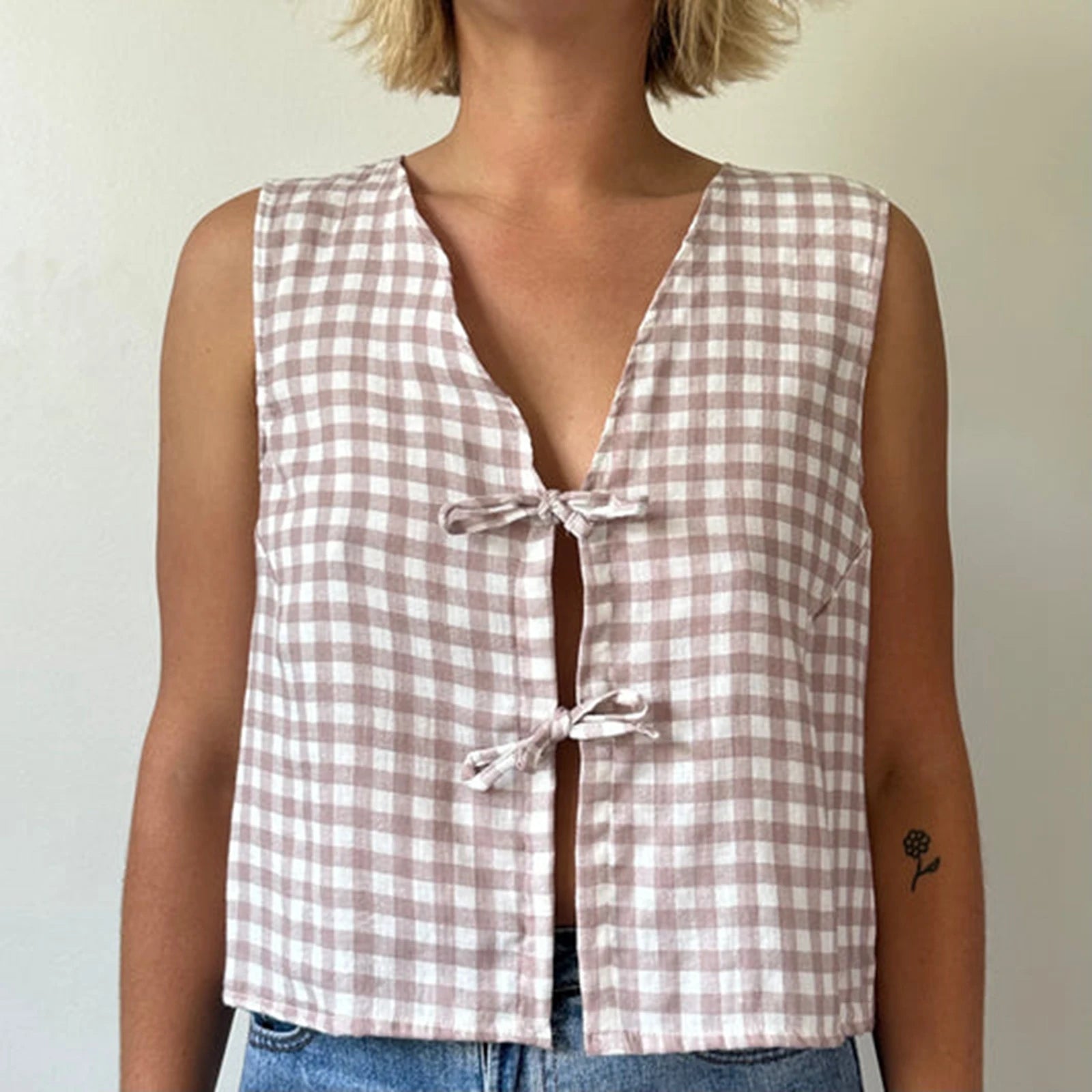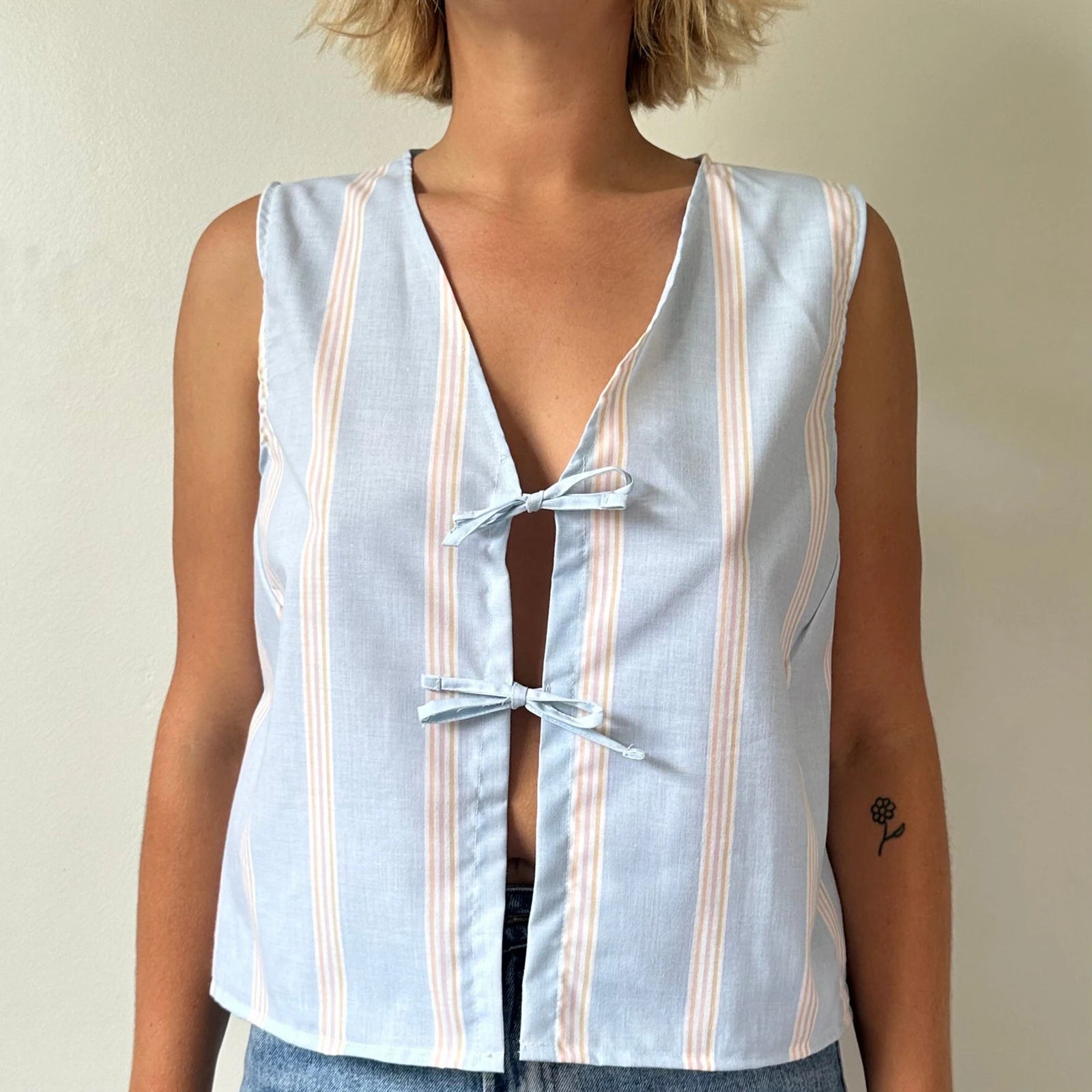 Crop Top mit Spitzen-Camisole und Bindedetail vorne