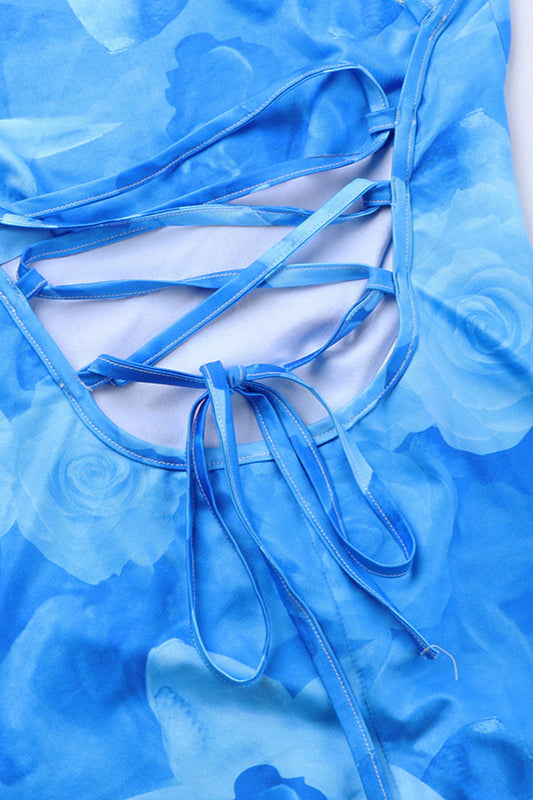 Figurbetontes Maxikleid mit Blumenmuster und Rüschenträgern
