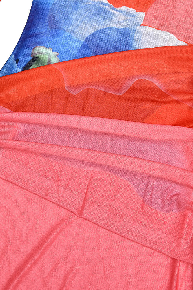 • Details: Gerüscht, hoher Schlitz, Farbblock