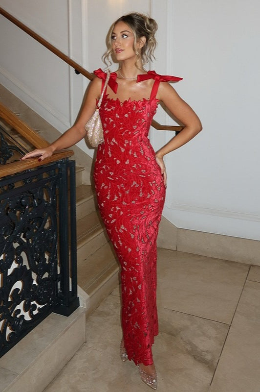 Sexy, ausgehöhltes, schmales, ärmelloses Kleid mit Schleife und Blumenmuster