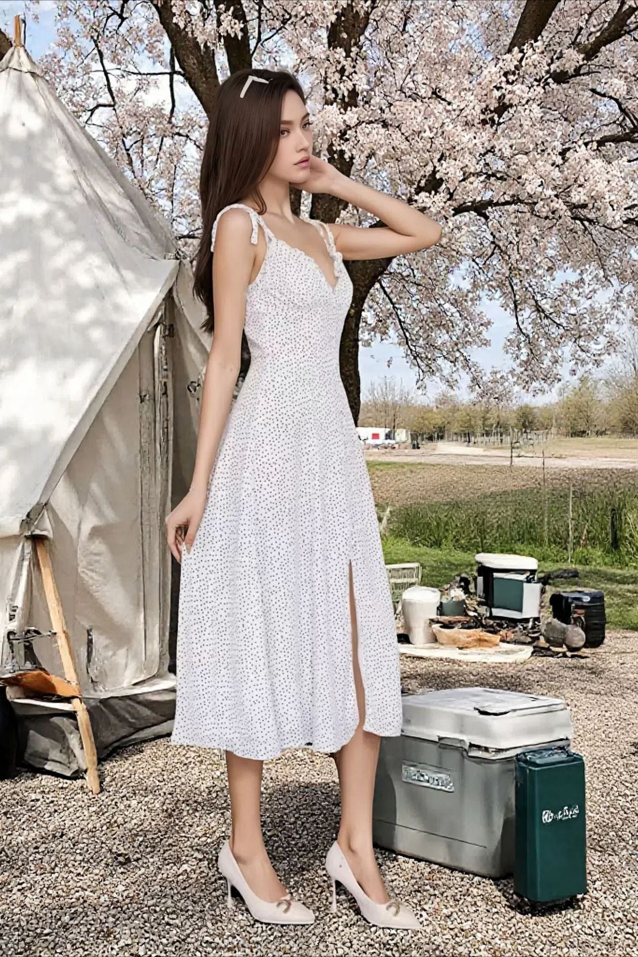 • Details: Punktemuster, offener Rücken, Camisole-Design