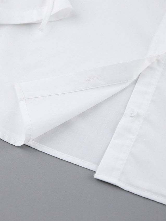 Weiße Bluse mit langen Ärmeln und Fliege