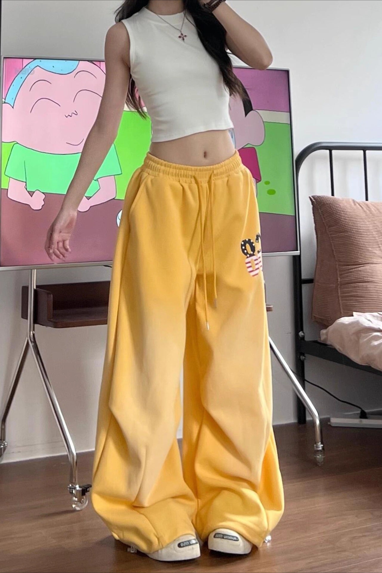 Yellow Graphic Loose Casual Sweat Pants