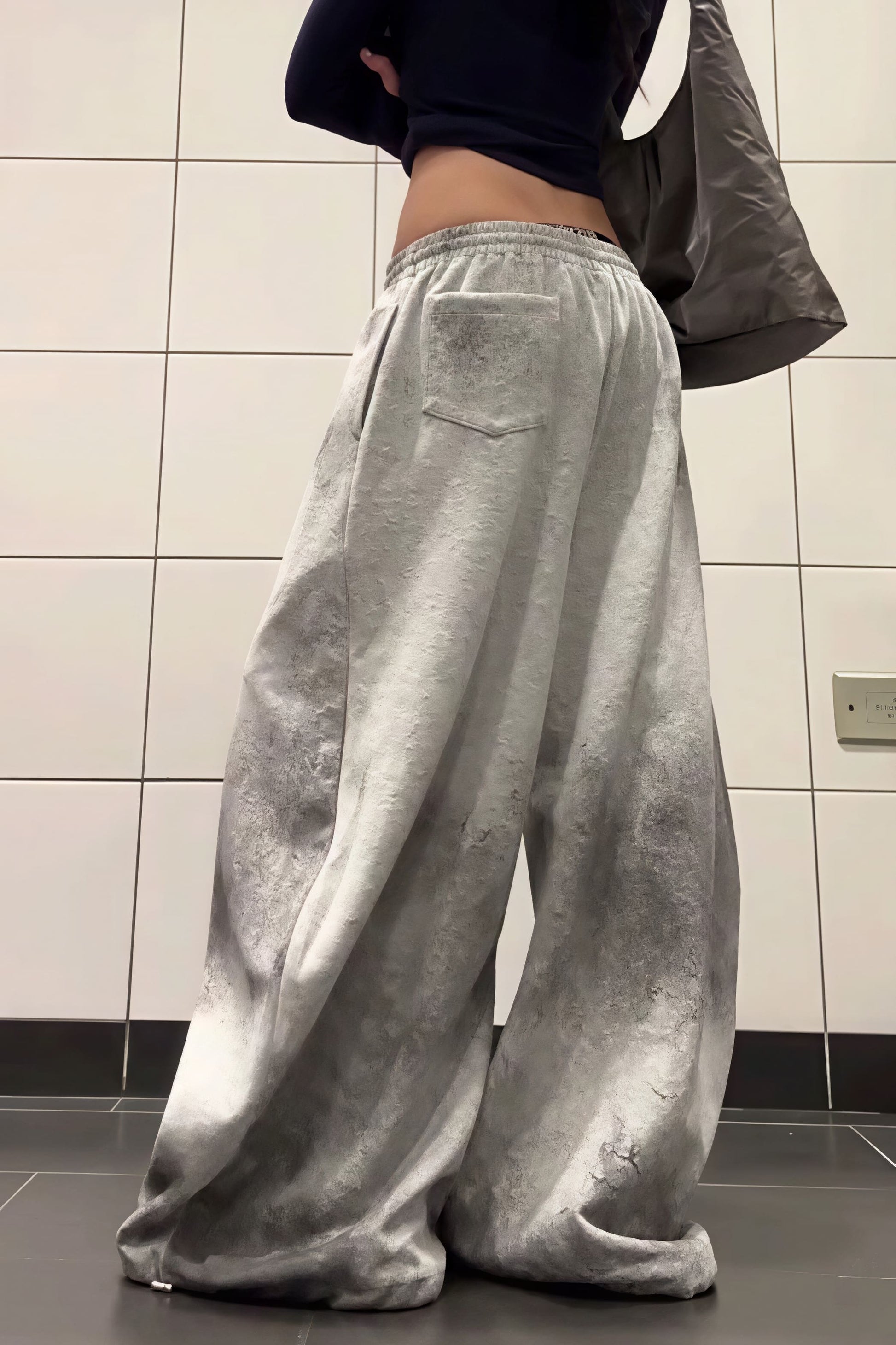 Retro Gray Graphic Drawcord Baggy Sweat Pants