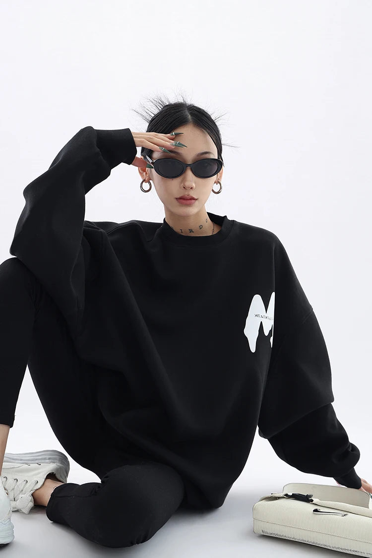 Trendiger, bedruckter, übergroßer, lässiger Herbst-Hoodie