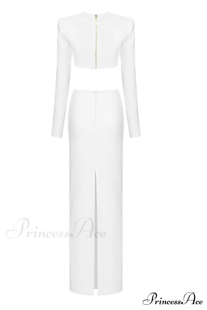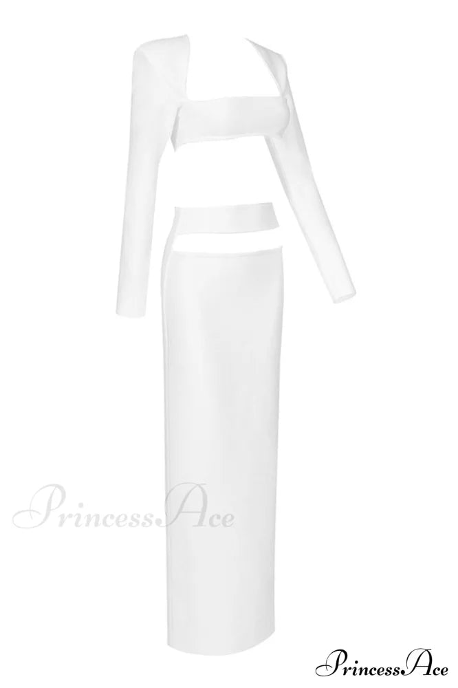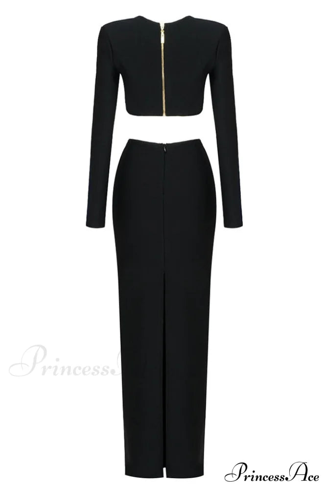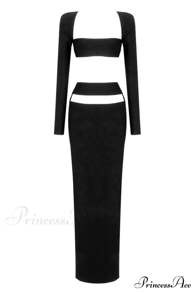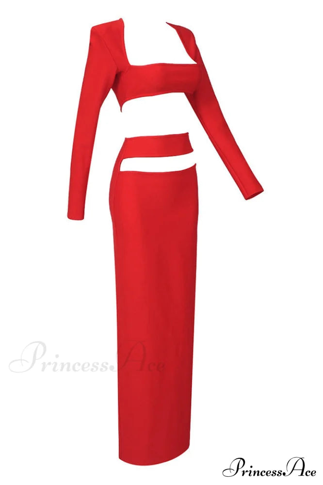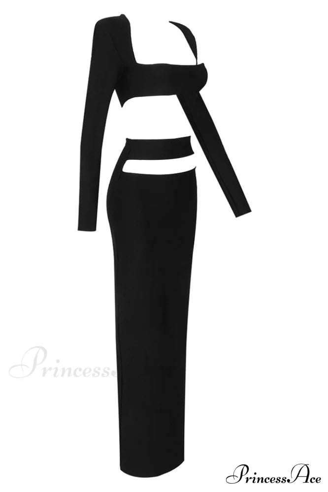 Des découpes sexy pour un look séduisant. Cet ensemble bandage à découpes Amara allie sophistication et fantaisie. Confectionné en maille de haute qualité, il présente des découpes sexy à la poitrine et à la taille, des manches longues et un ourlet long. Associez-le à des talons à brides et à une pochette assortie pour une allure affirmée !