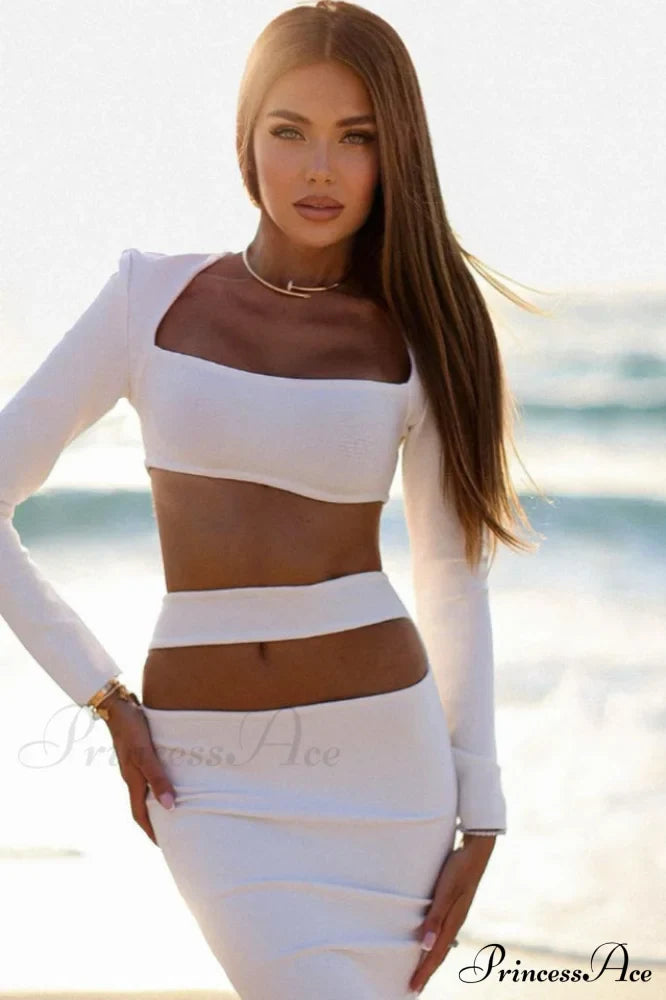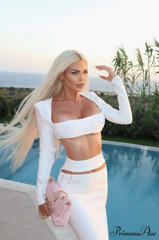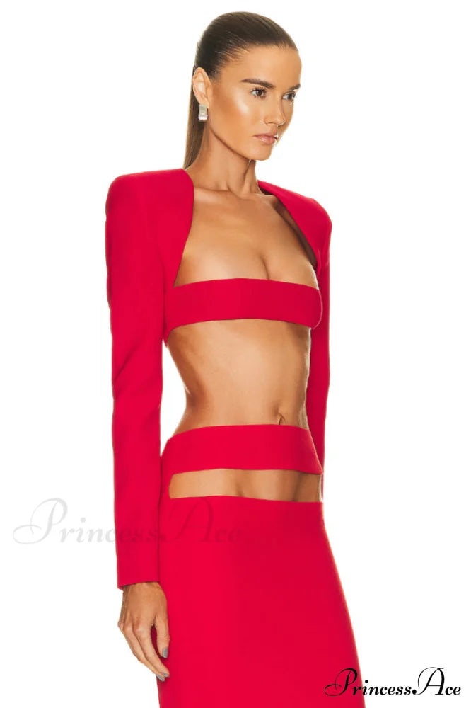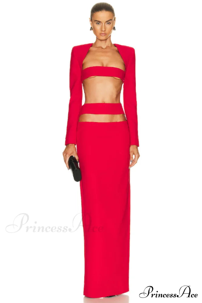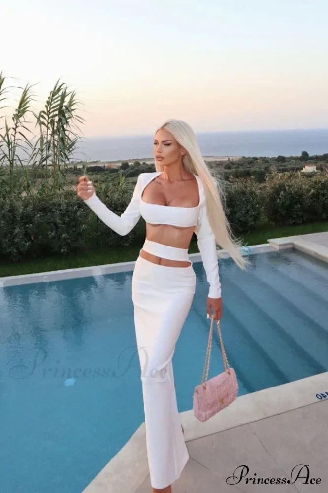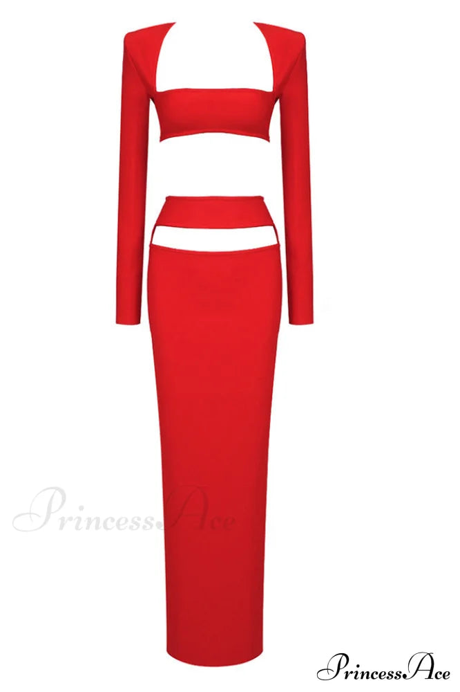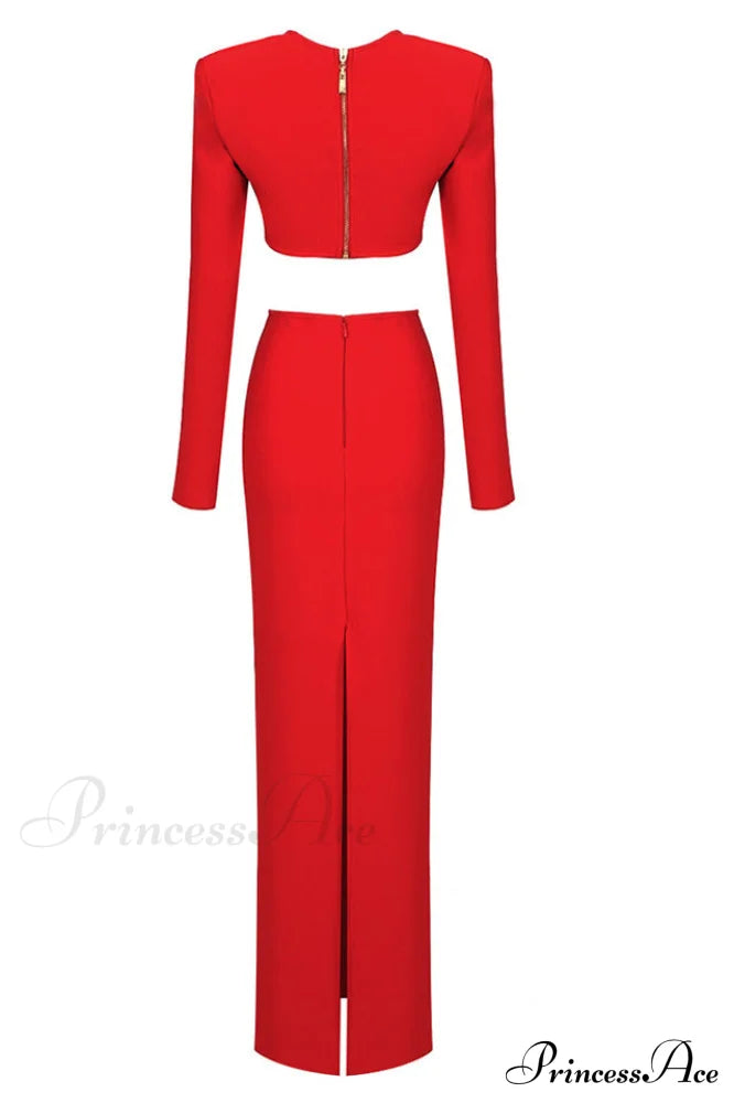 Des découpes sexy pour un look séduisant. Cet ensemble bandage à découpes Amara allie sophistication et fantaisie. Confectionné en maille de haute qualité, il présente des découpes sexy à la poitrine et à la taille, des manches longues et un ourlet long. Associez-le à des talons à brides et à une pochette assortie pour une allure affirmée !