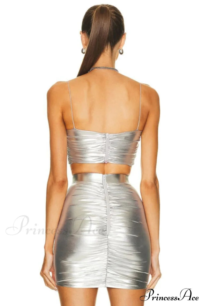 Tissu métallique avec détails froncés