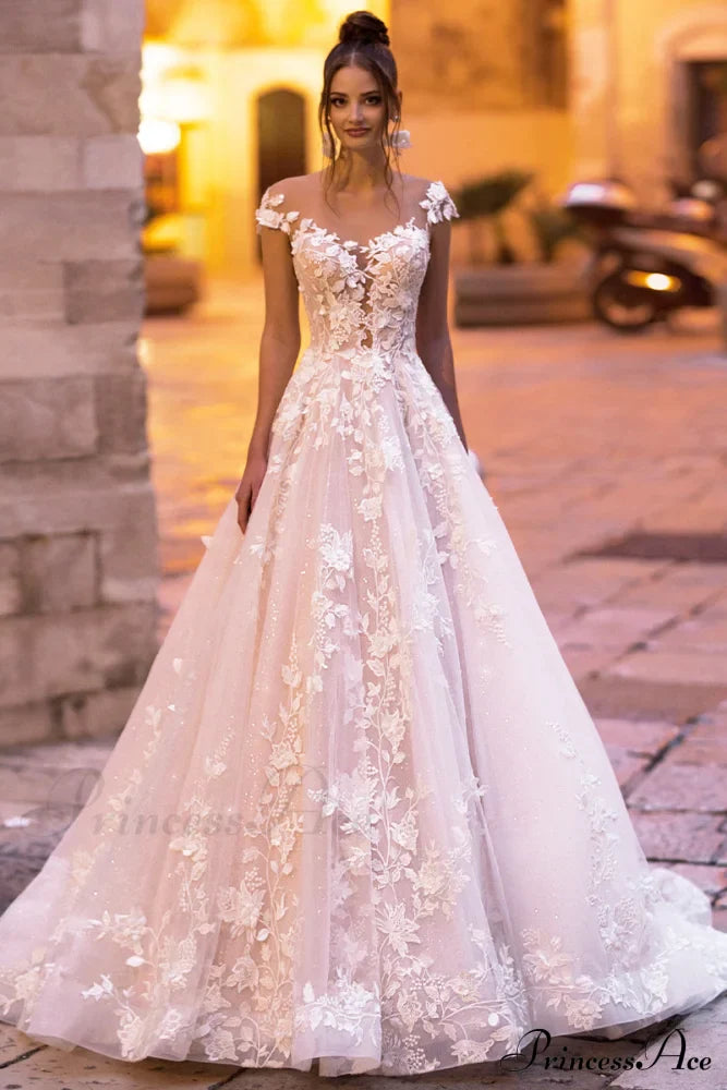 Votre rêve commence avec la robe de mariée trapèze en dentelle Cecilia ! De magnifiques applications de dentelle 3D et un tulle doux subliment cette robe de bal glamour. Son décolleté en tulle illusion et ses épaules dénudées lui confèrent un effet corset ajusté qui sublime la taille de chaque mariée. Le dos est orné d'une traîne cathédrale et d'une fermeture éclair boutonnée.