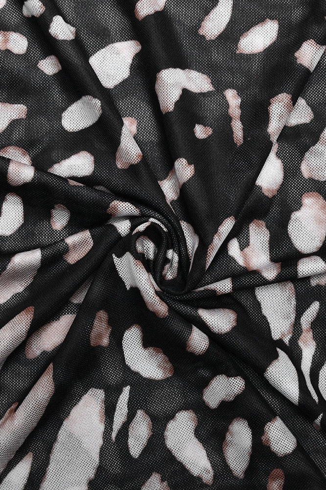 Robe courte moulante à col roulé et imprimé léopard en maille
