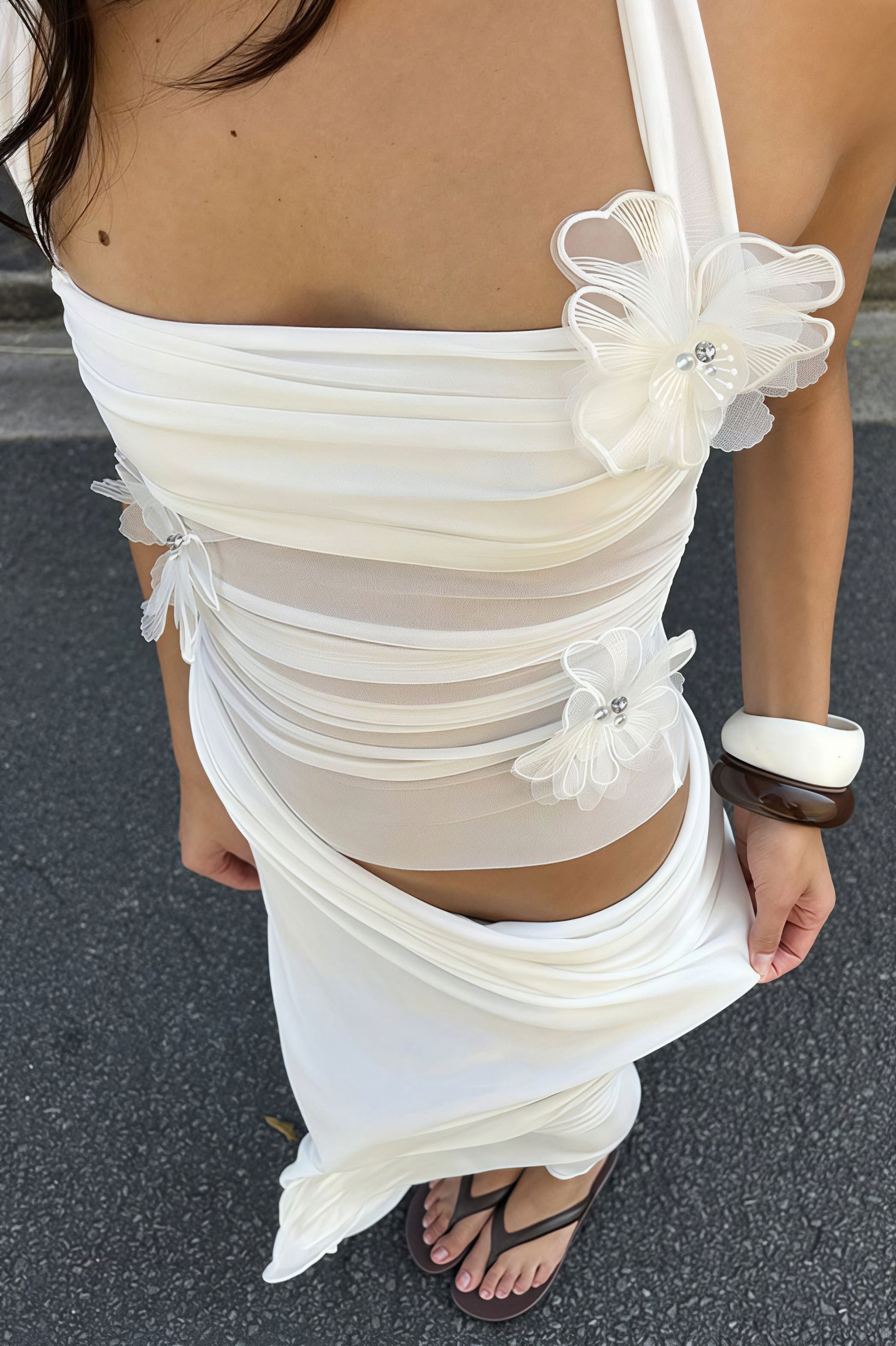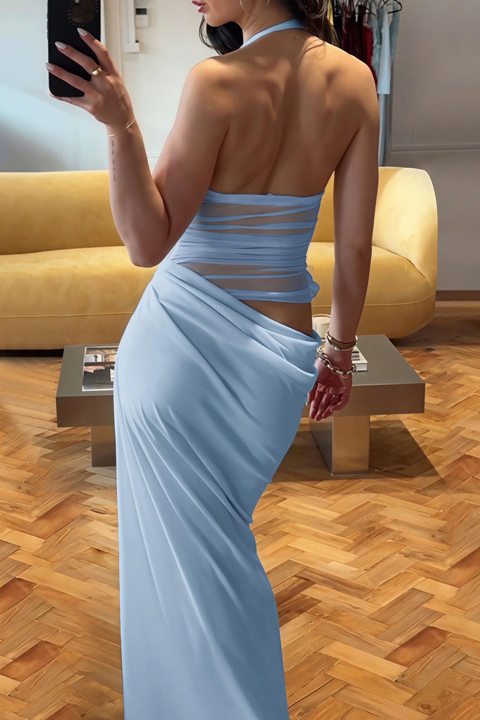 3D Floral Patchwork Halter Slim Cutout Waist Maxi Dress