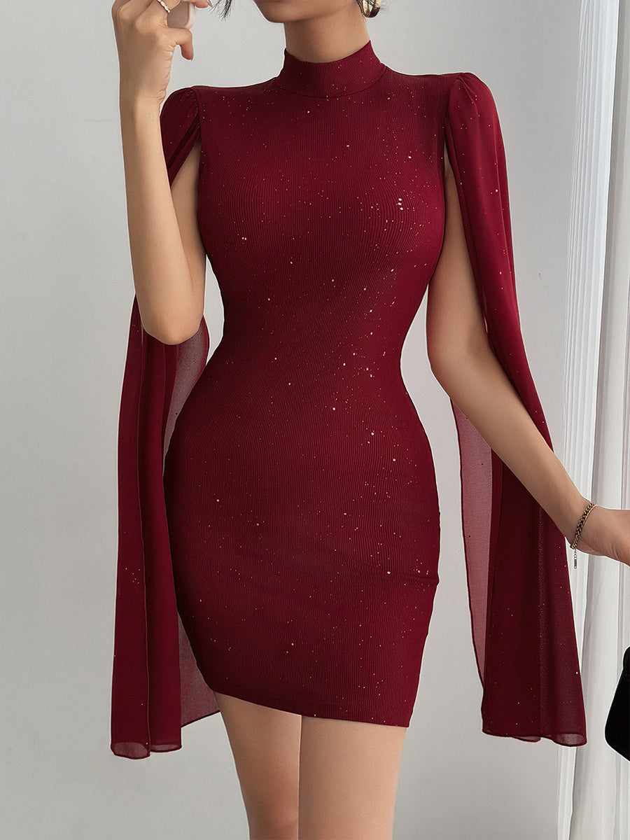 Rhinestone Spliced Round Neck Slim Fit Mini Dress