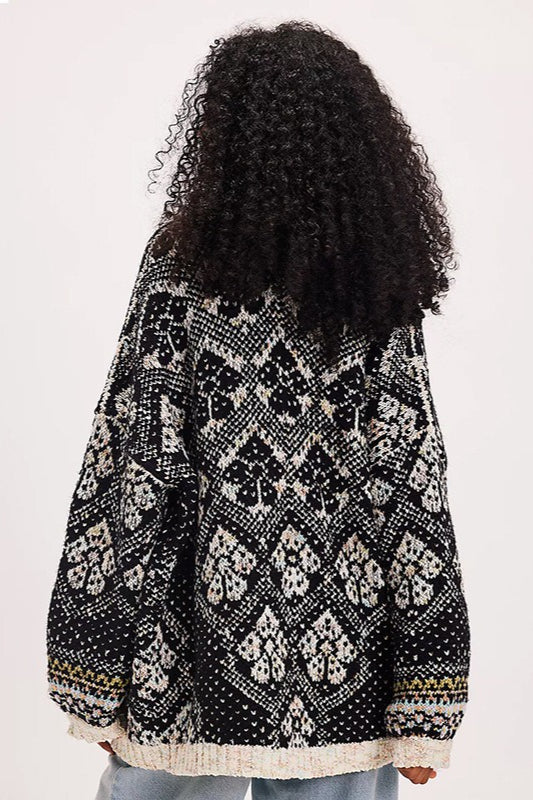 Casual Single Breasted V Neck Square Knit Cardigan