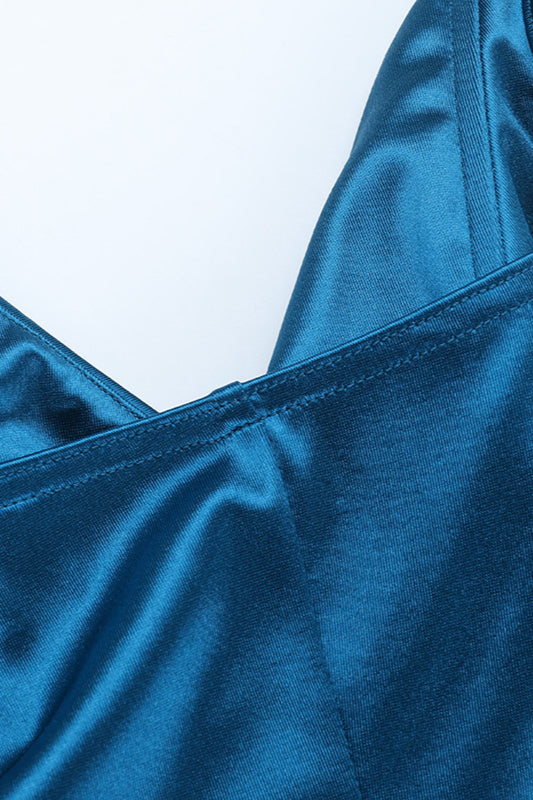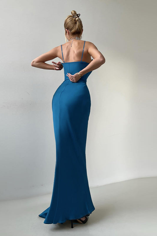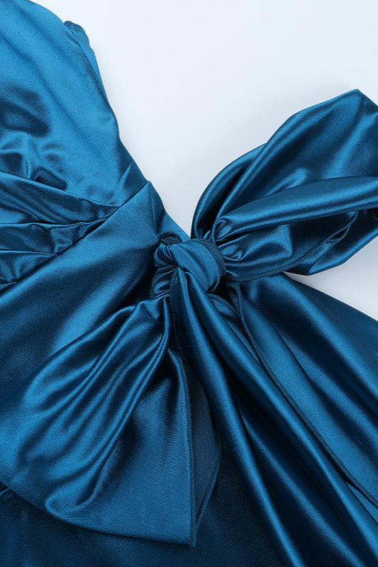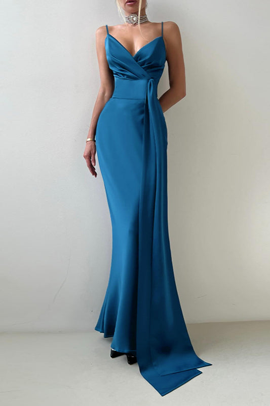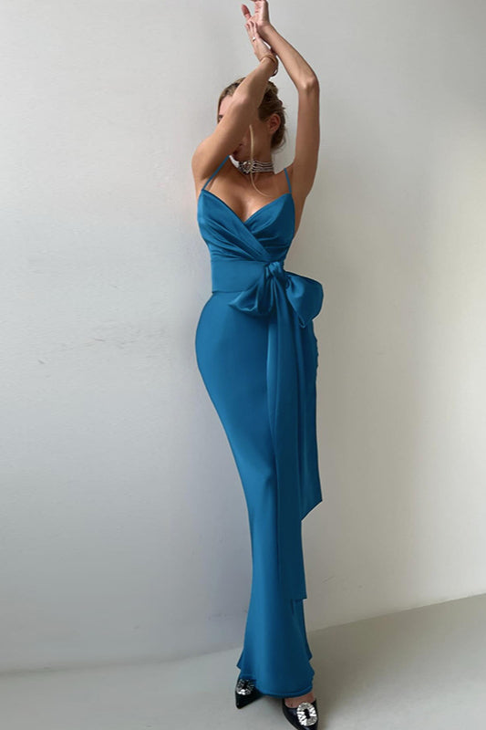 Robe de soirée moulante à col en V et taille cintrée avec nœud papillon