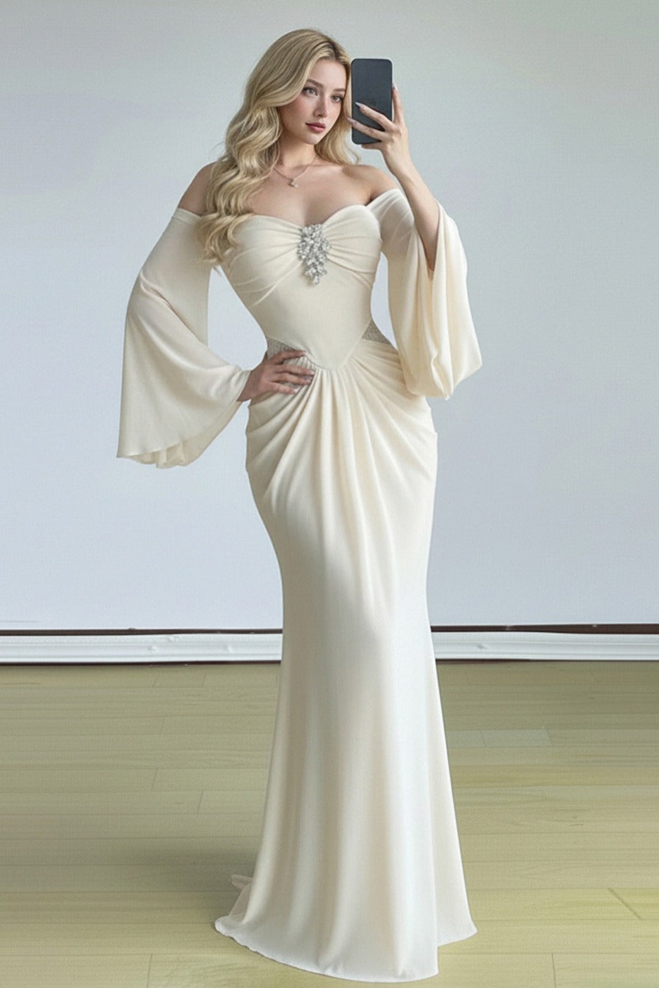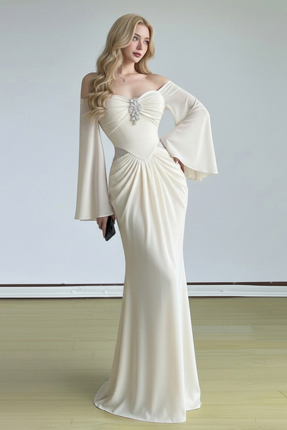 • Neckline: Off-the-Shoulder