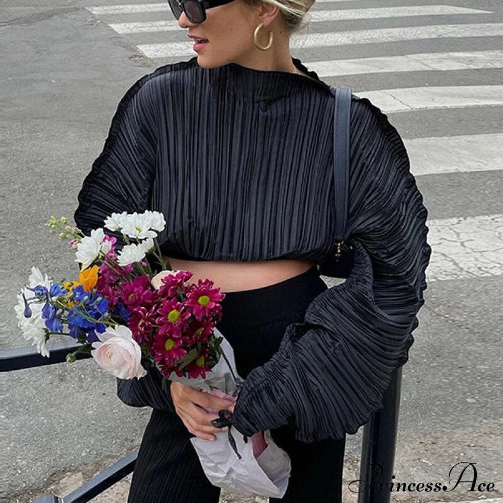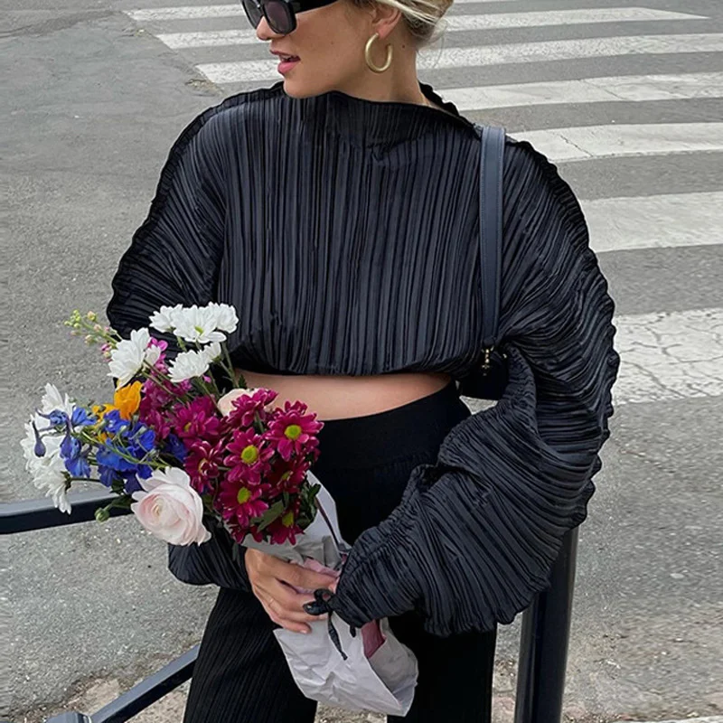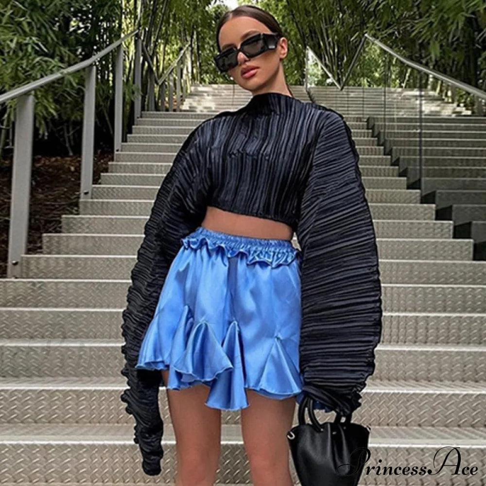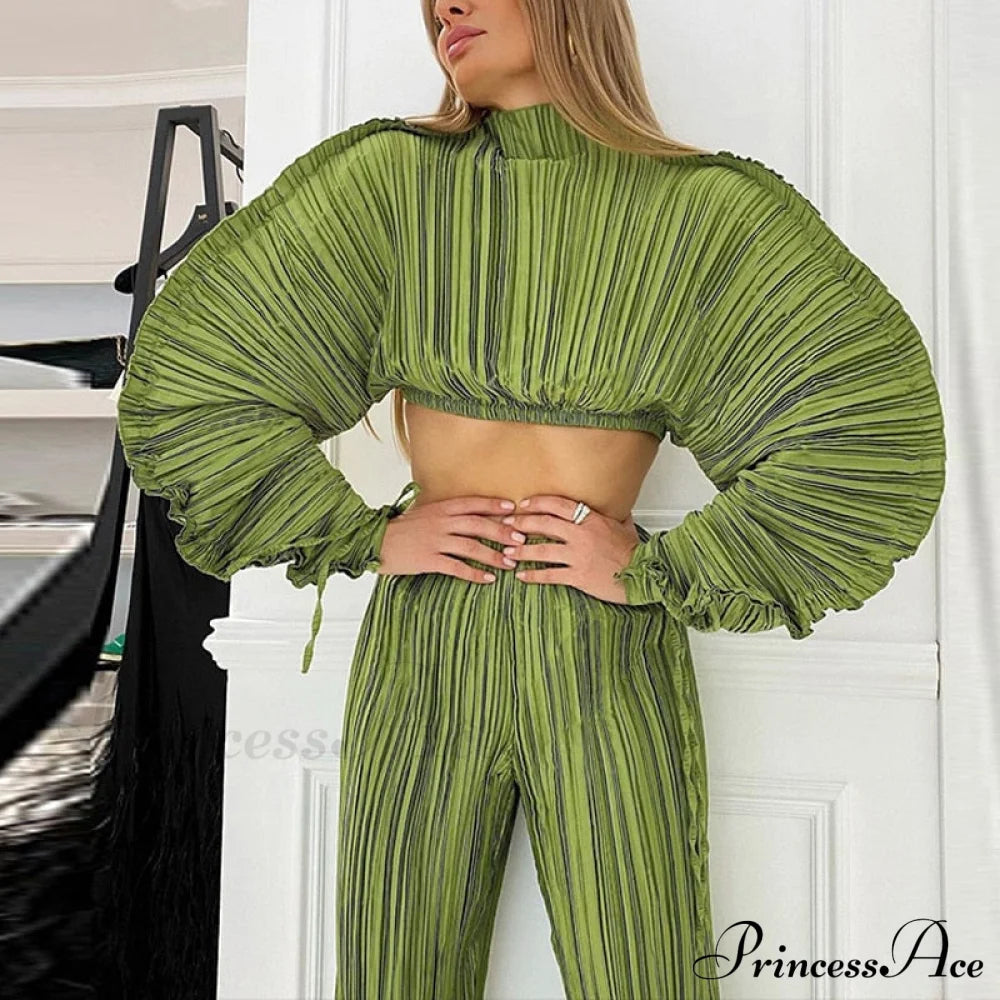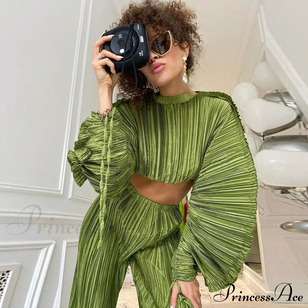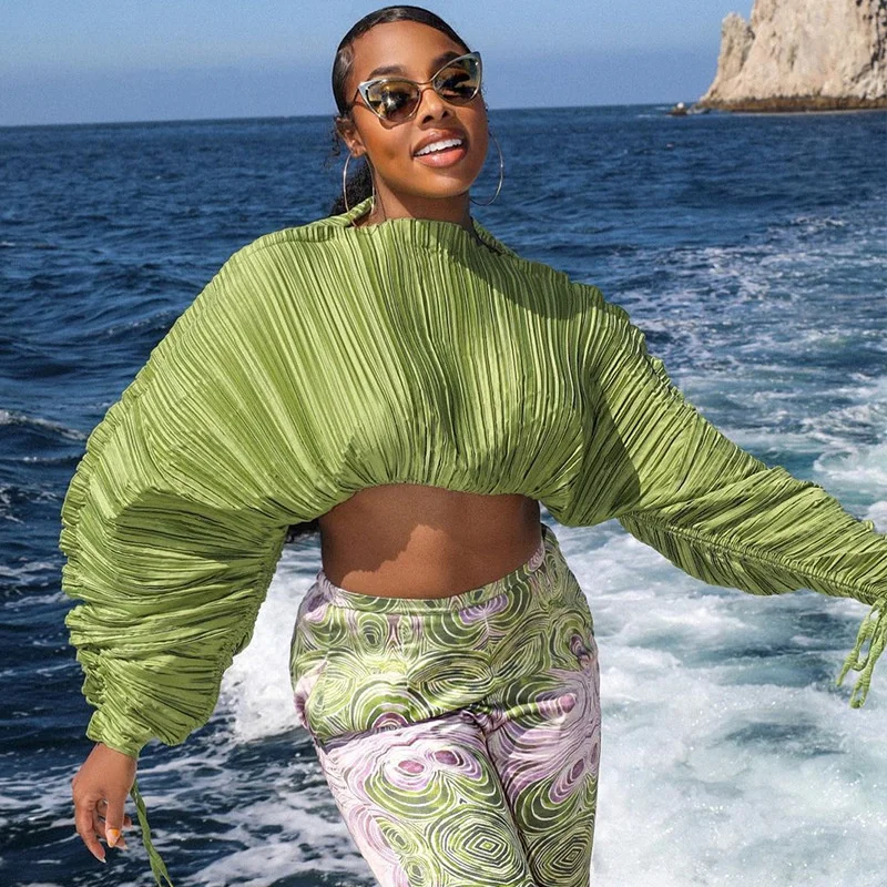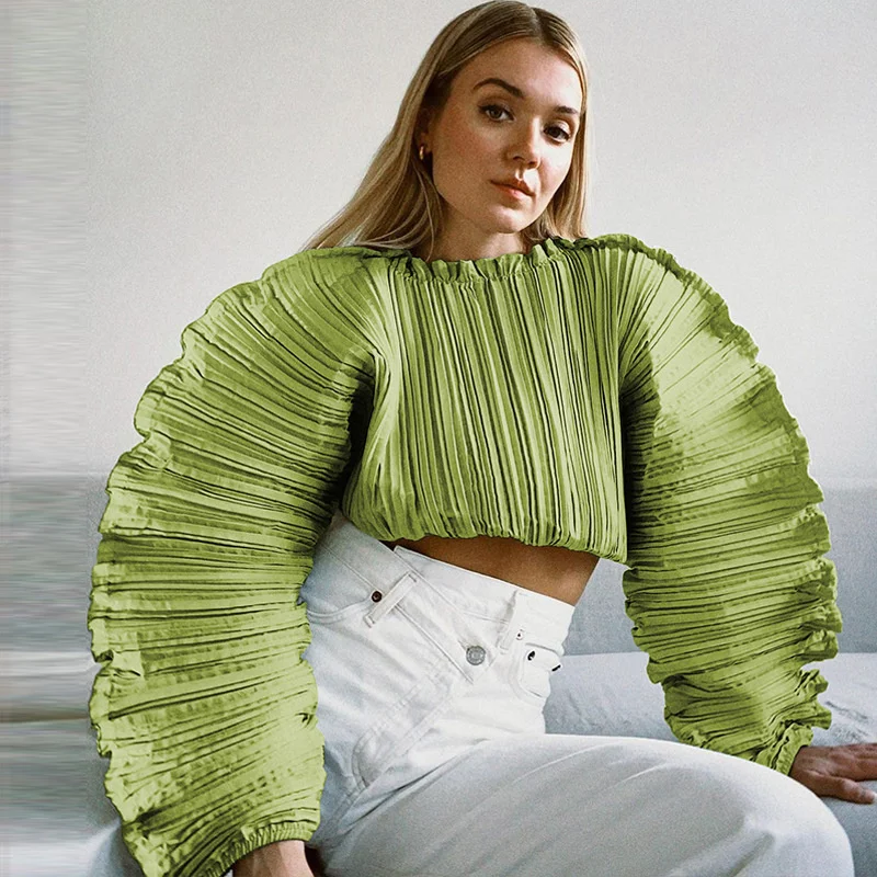 Green Tops Woman Casual Loose Short Ins Festival Tee Shirt Bat Sleeve Irregular Pullover Ins Women's Pleated Fold