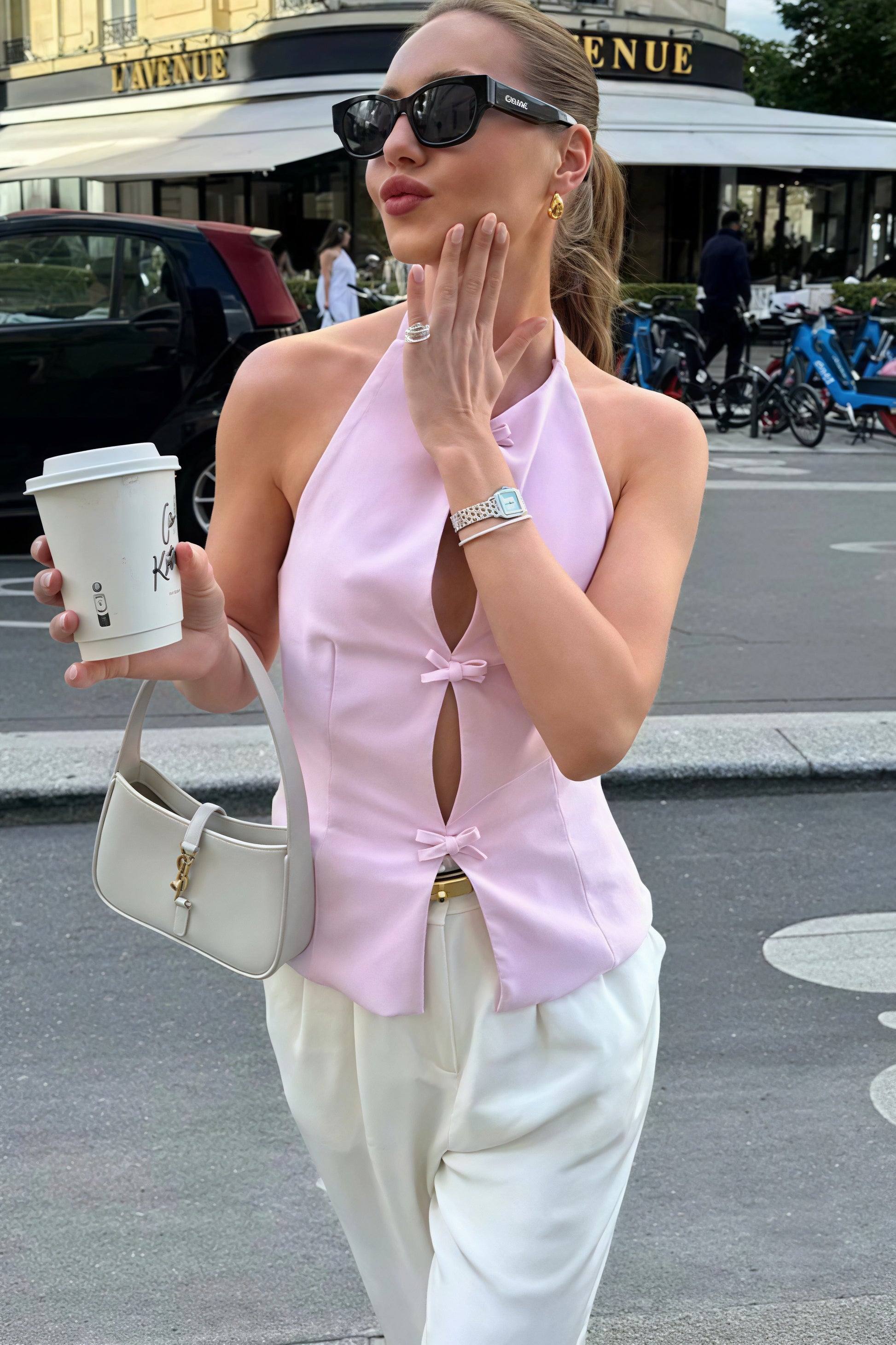 Elegant Hollow Out Bow Halter Neck Halter Top