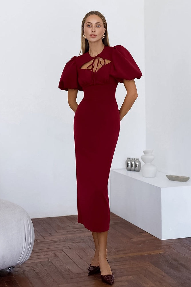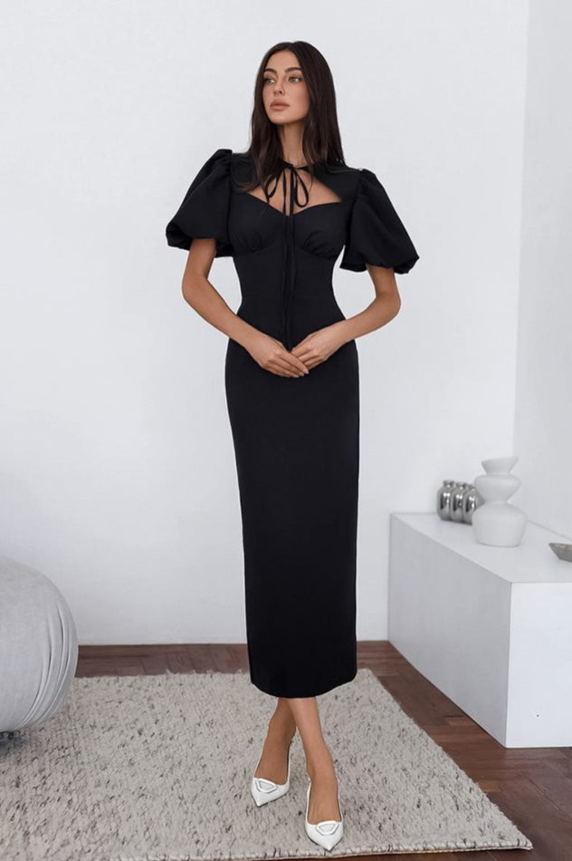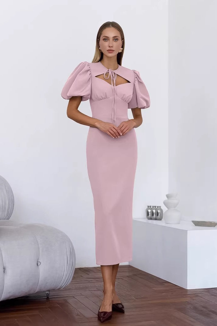 Elegant Sexy Puff Sleeve Bodycon Maxi Dress