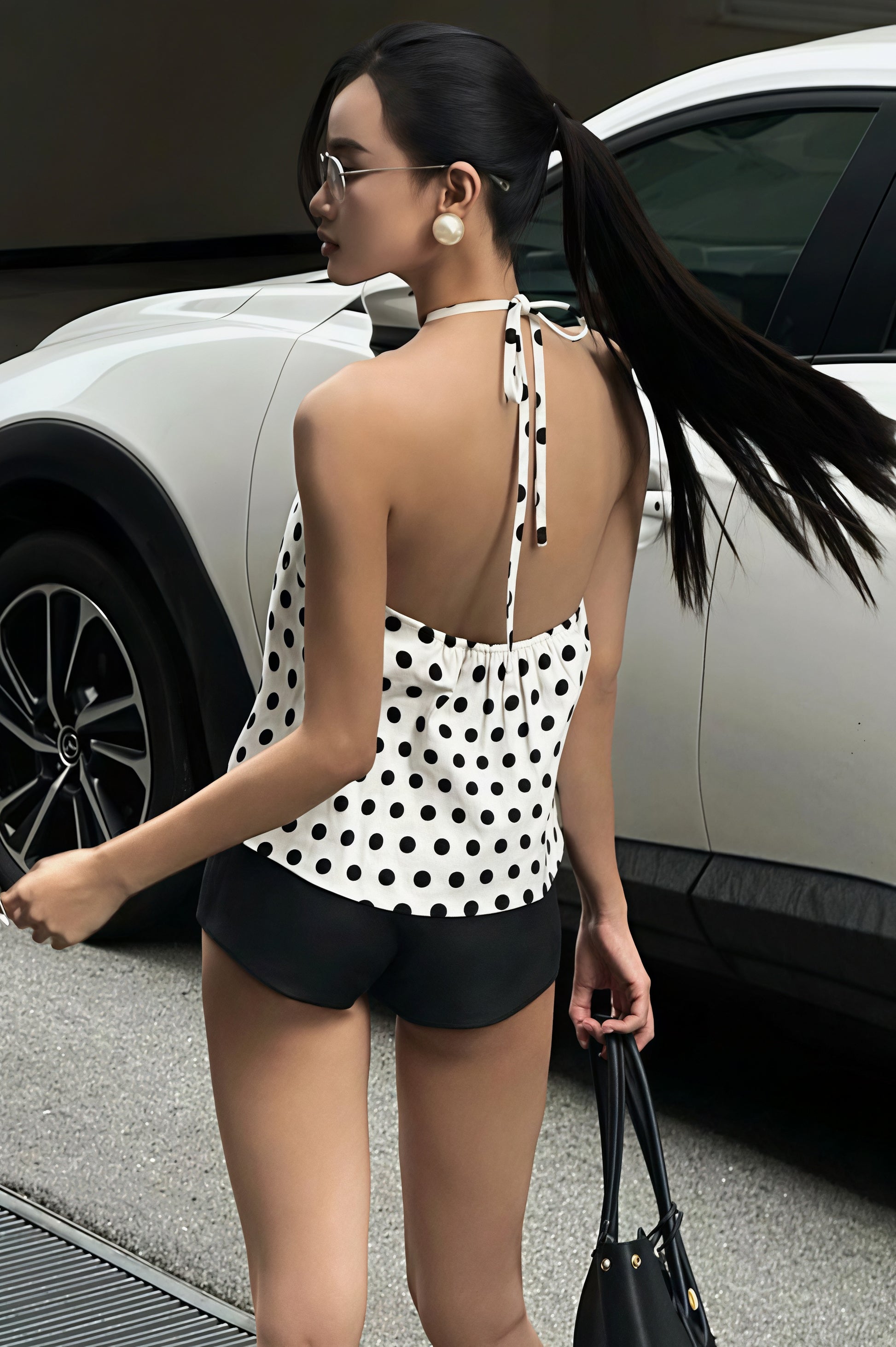 • Details: Bow, Cropped, Polka Dot