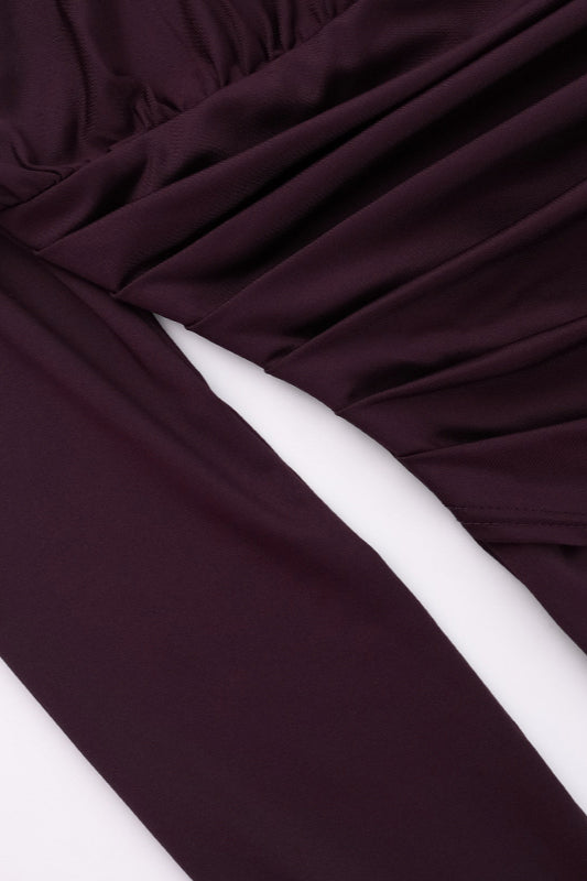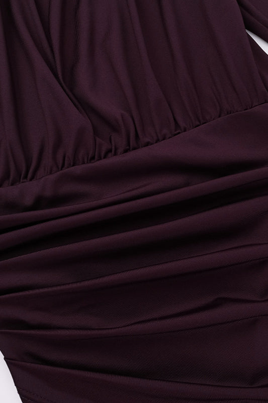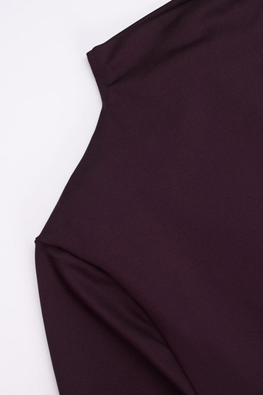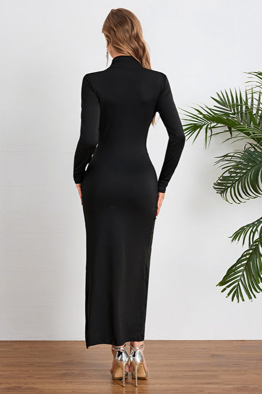 High Neck Ruched Split Bodycon Long Sleeve Party Dress
