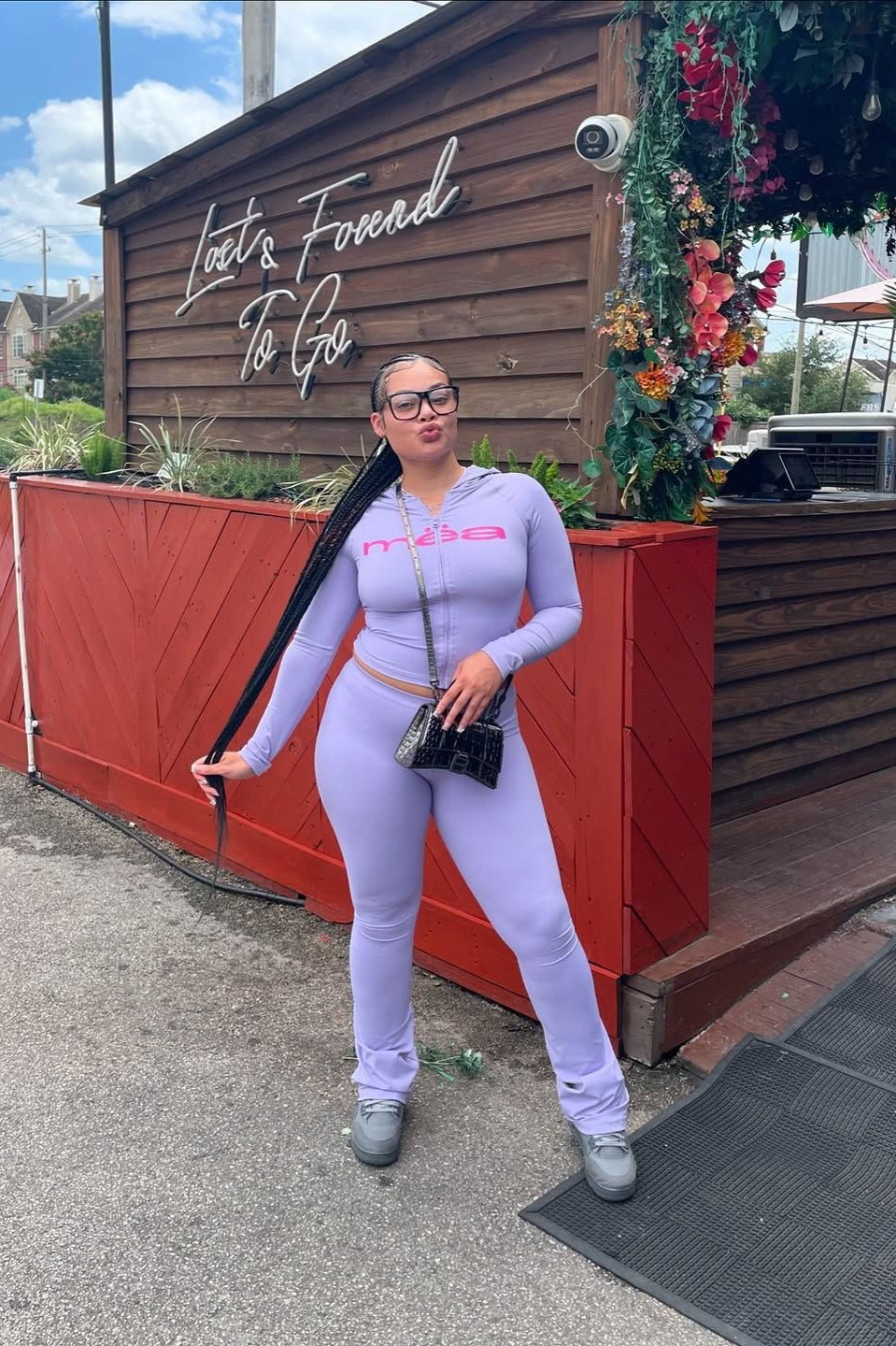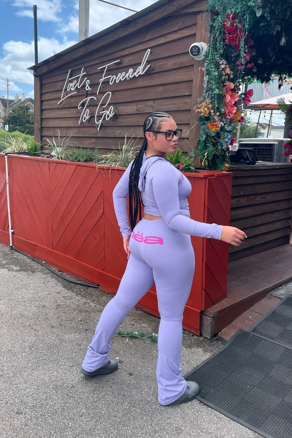 Letter Print Crop Hoodie & Skinny Pants Two Piece Set