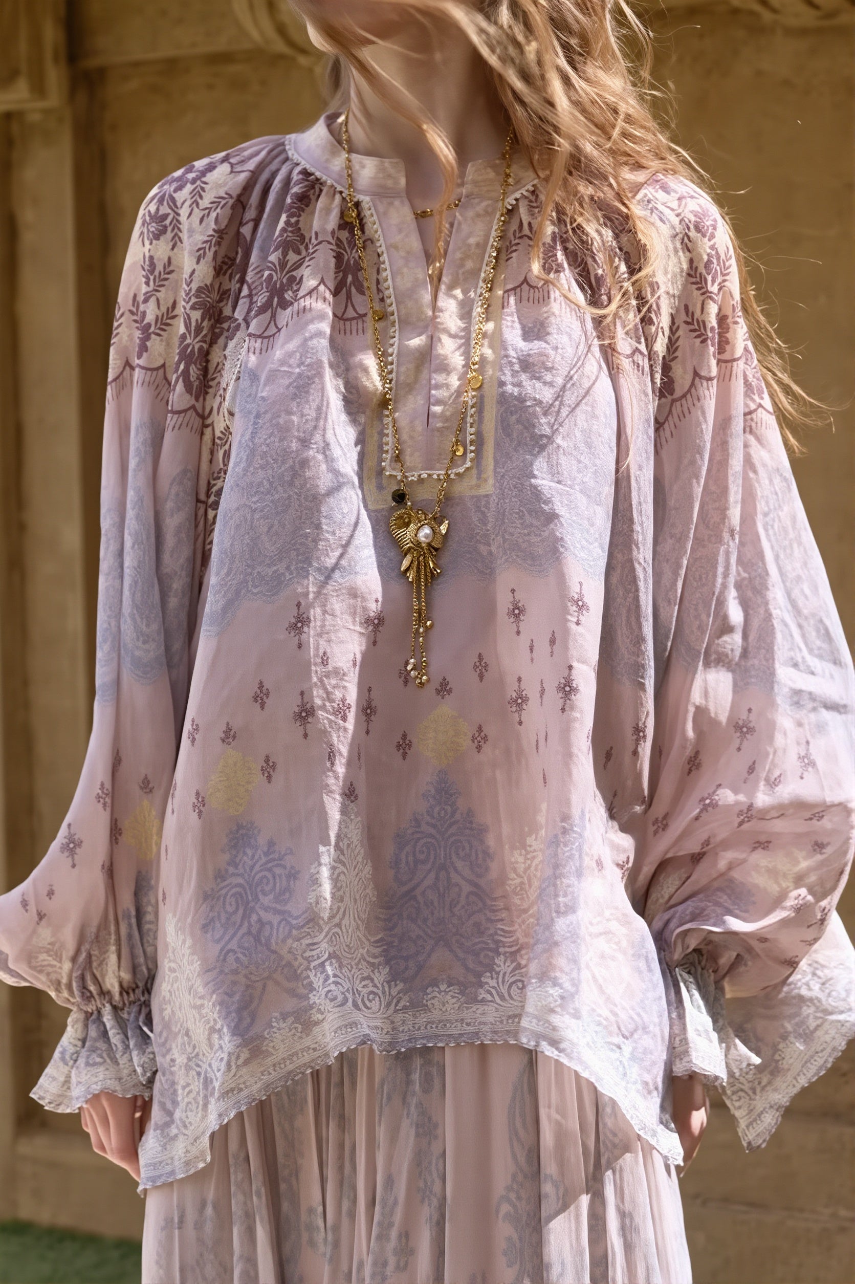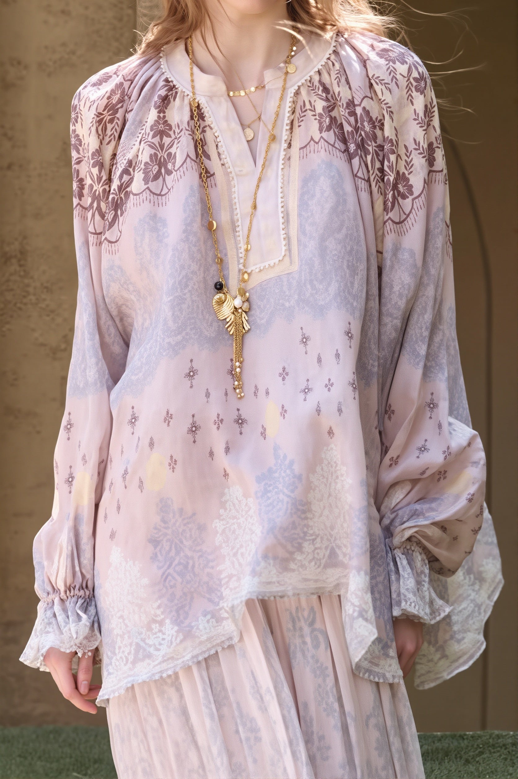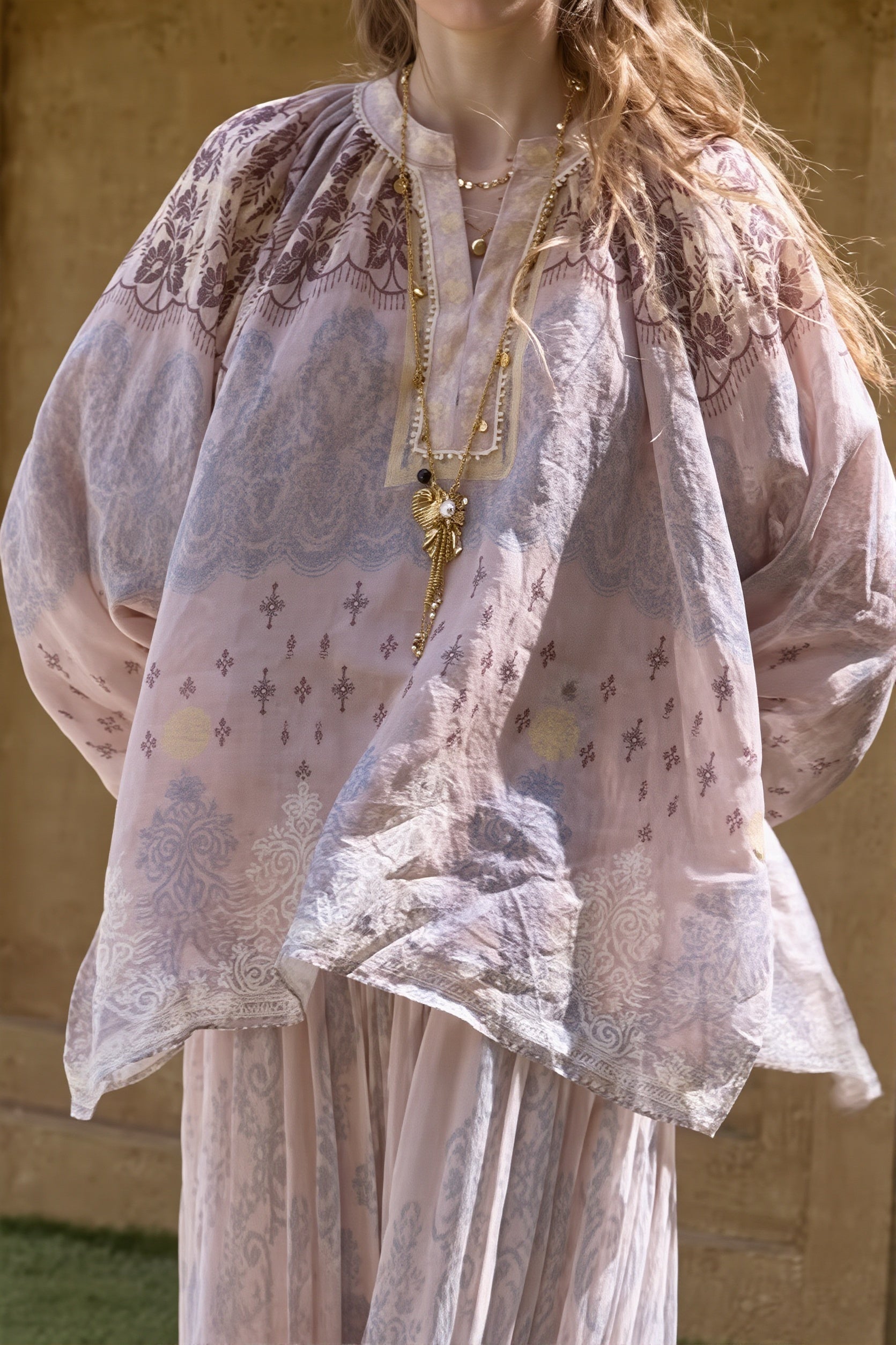 Linen Tie Dye Casual Long Sleeve Blouse