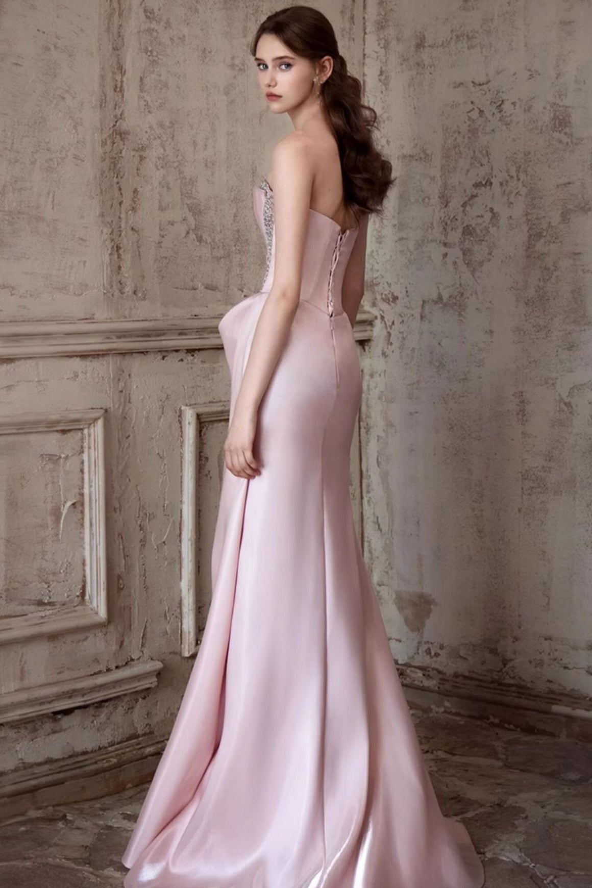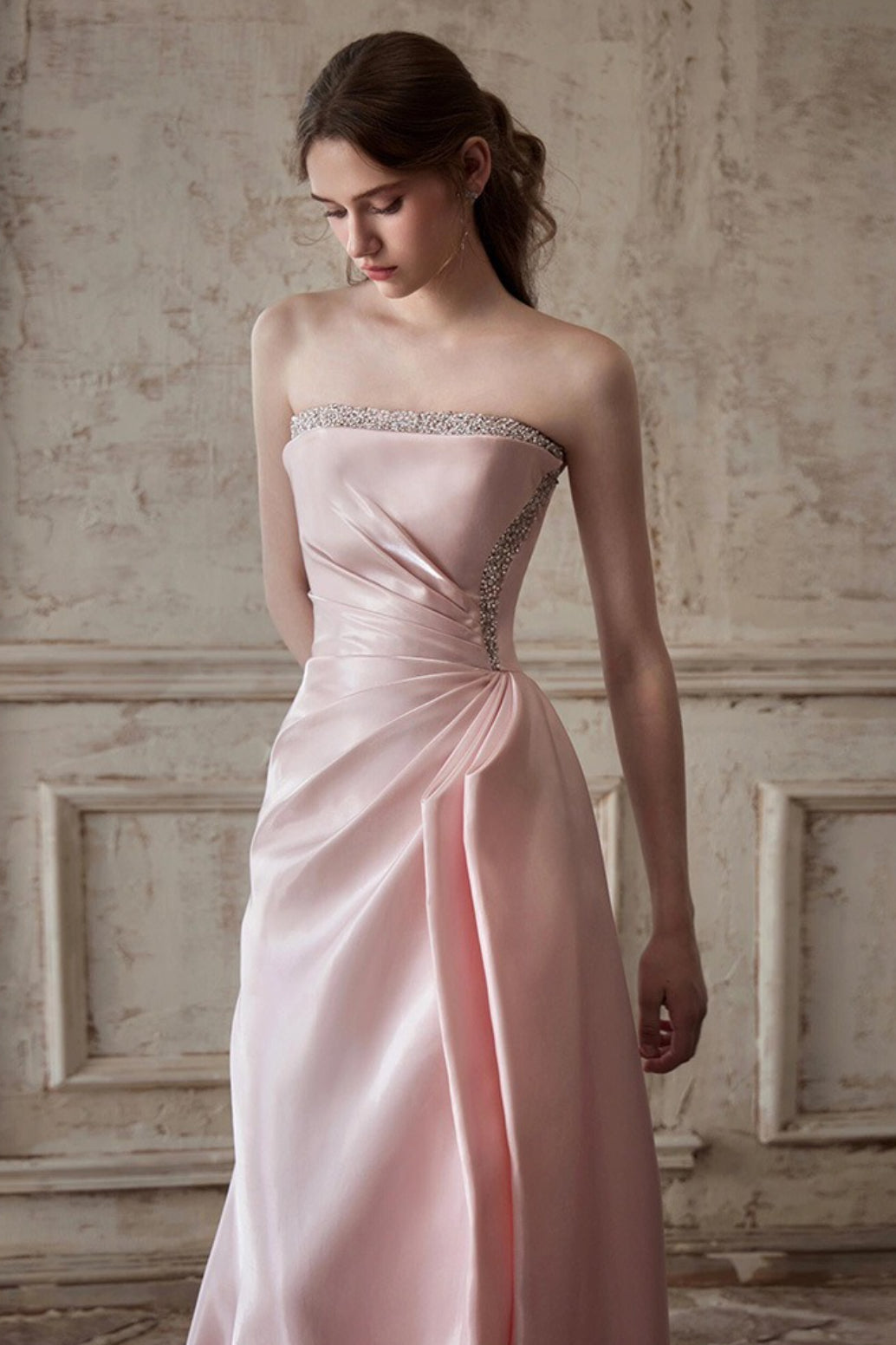 Pink Strapless Elegant Waist Slimming Prom Dress