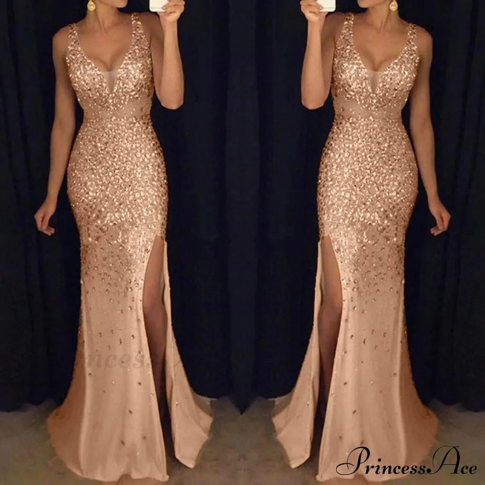 Fashion Elegant Female Party Ruffled Ribbed Maxi Flare Long Sleeve Solid Color Round Neck Pleated Dress