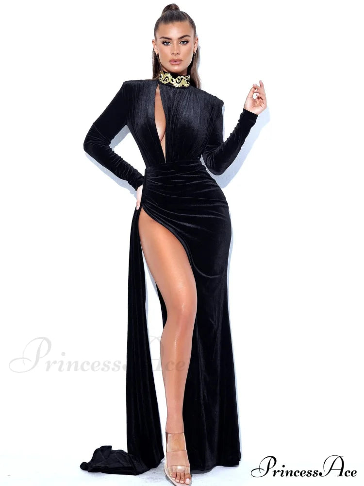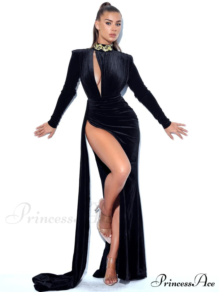 PrincessAce - Velvet Pleated Slit Elegant Party Dresses