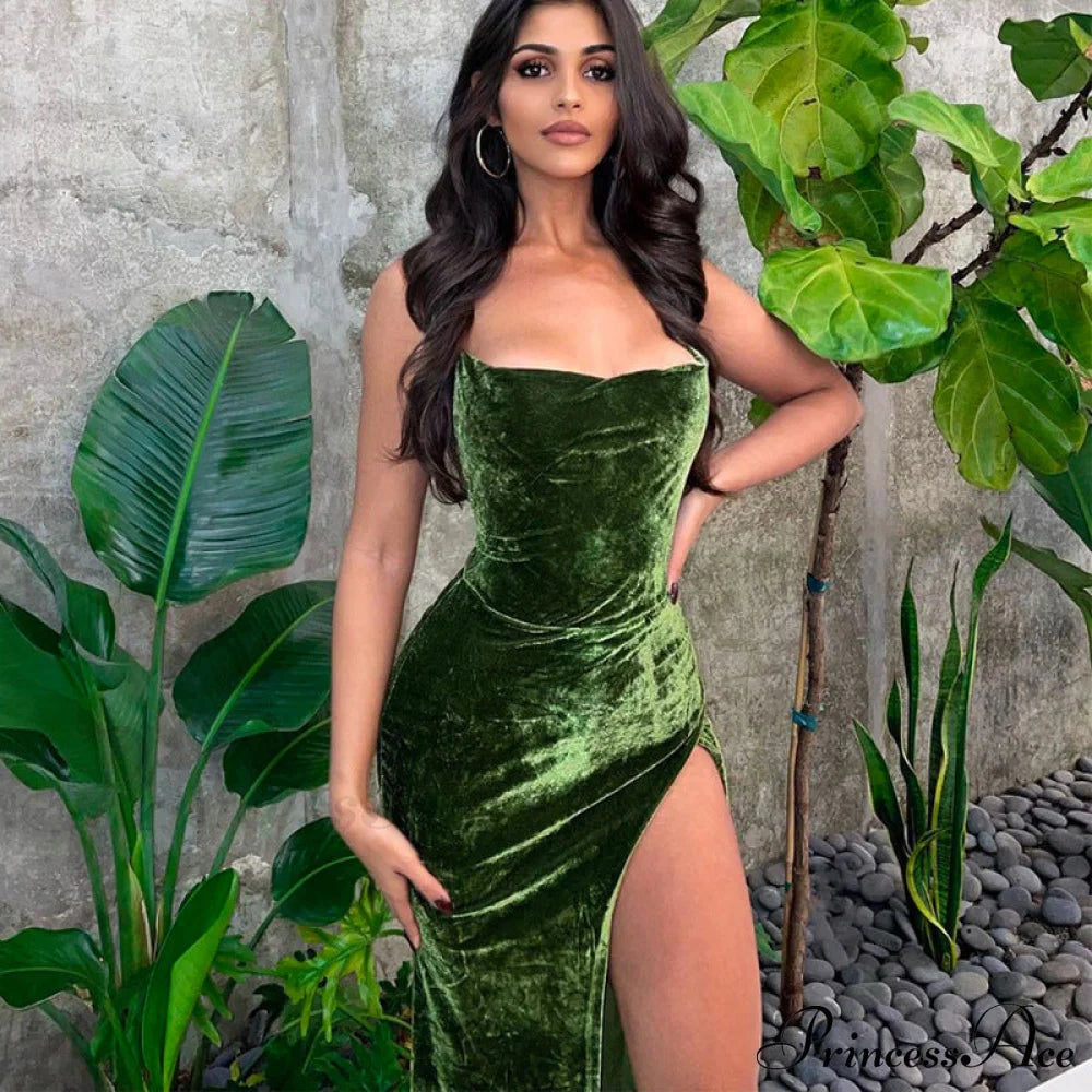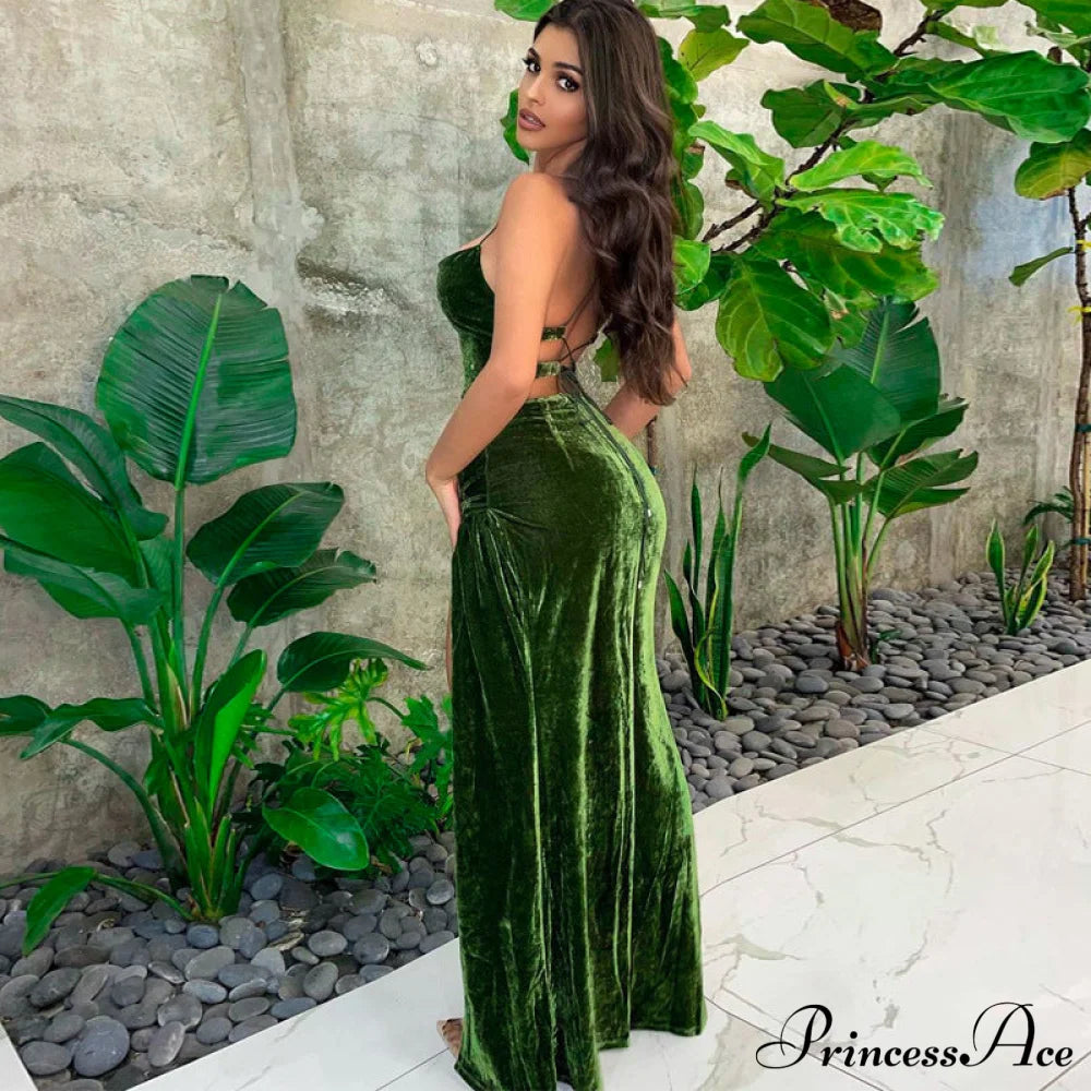 PrincessAce - Sexy Backless Sleeveless Party Velvet Maxi Dresses