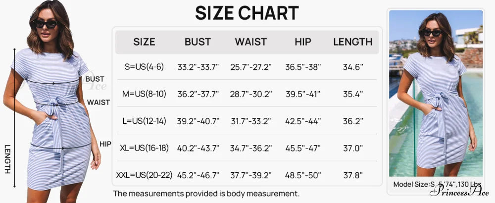 Stride along the beachfront in the stylish and easy-going striped dress with pockets. This charming attire is made from a light and airy linen-blend material, marked by its attractive stripe pattern throughout. It showcases a scoop neckline and a fitted bodice, embellished with a tie waist belt for that added flair.
