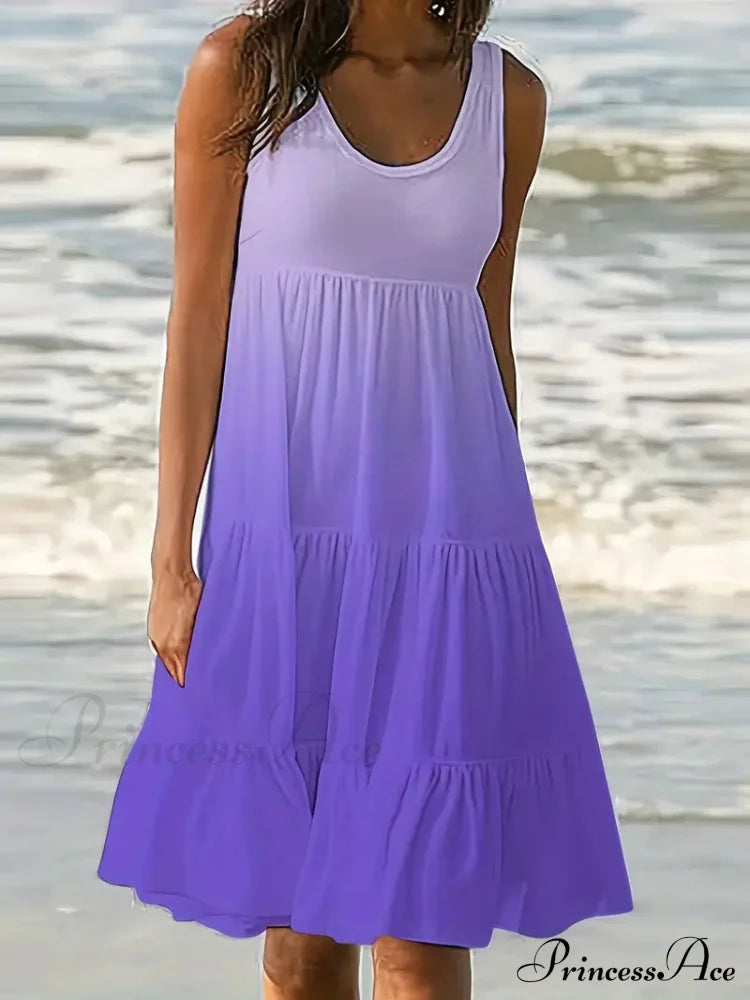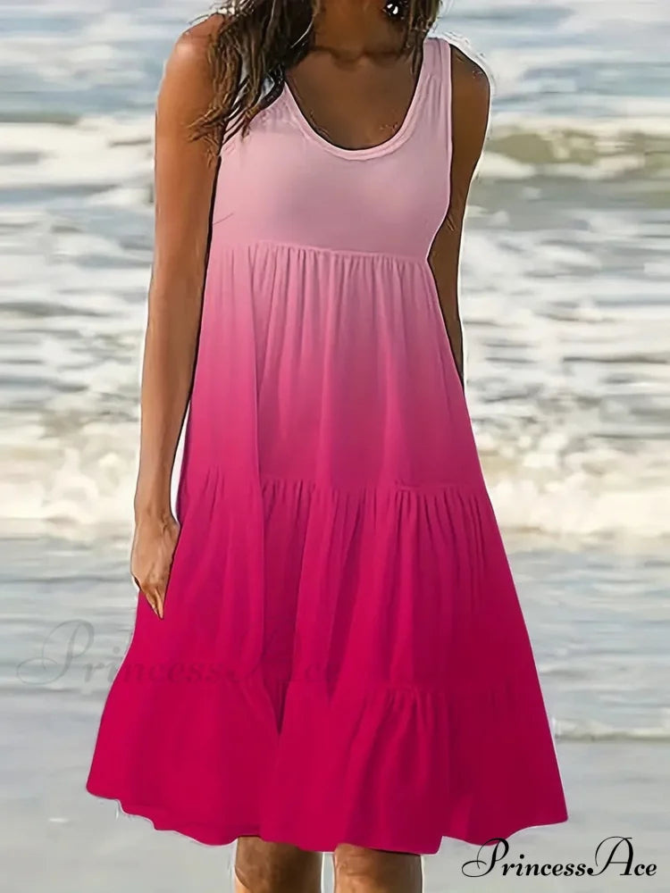 Your wardrobe will sing a new tune of versatility with this enchanting Ombre Pleated Chiffon Maxi Dress, designed to cater to both the laid-back days and the upscale nights. This dress boasts a gradient color scheme that infuses modern style with every step. Its sleeveless, crew neck bodice offers a breathable and relaxed fit, perfect for those who value comfort without compromising on elegance. Crafted from a lightweight chiffon, it’s the ideal choice for embracing the warmth of spring and summer. With a simple switch of footwear—from casual sandals to chic heels—and the addition of accessories, this dress transitions effortlessly. The A-line silhouette is the epitome of flattery, assuring that all body types are graced with beauty.