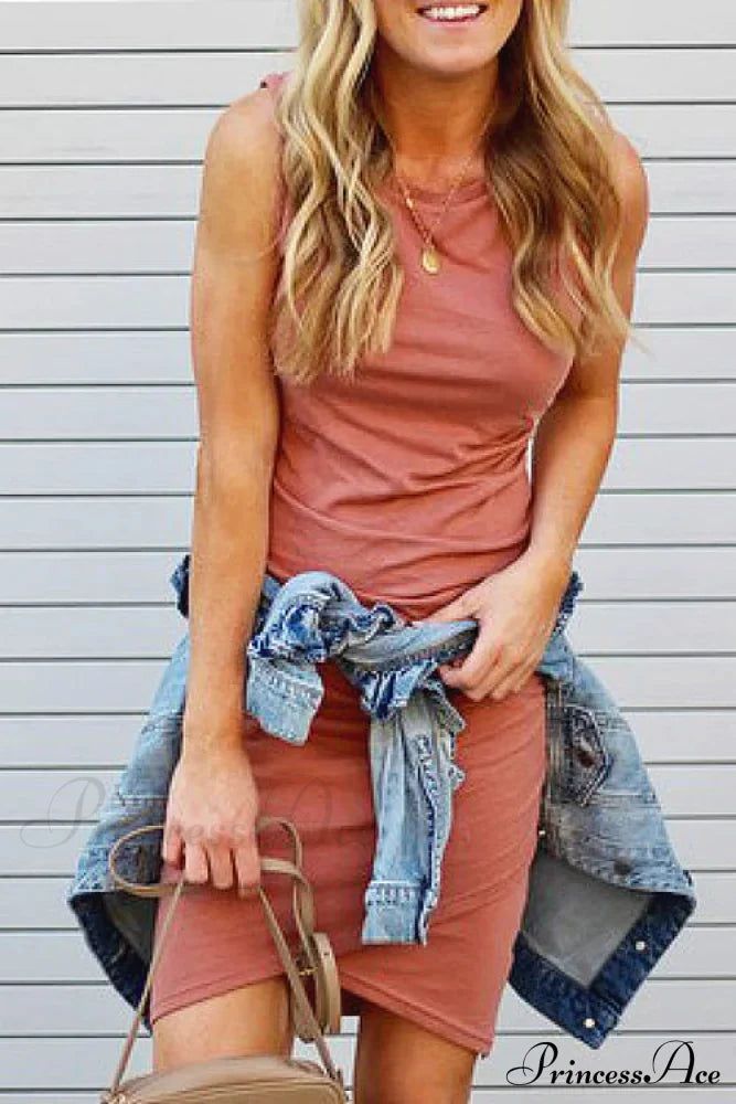 This sleeveless dress is perfect for making a statement at your next dinner date. It features a flattering v-neckline and a playful tulip hemline, along with ruched detailing along the side to accentuate your curves. The breathable, ribbed knit material will keep you comfortable on hot summer nights. Pair it with your favorite heels and statement earrings for a complete look that is sure to turn heads.