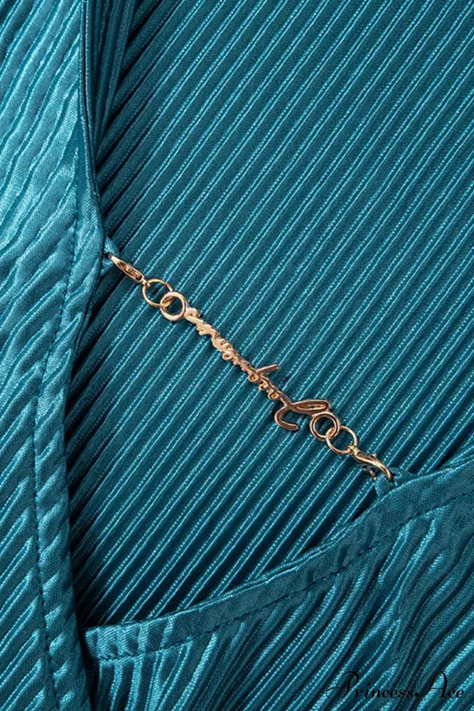 Pleated Lapel Mini Dress with Low Cut