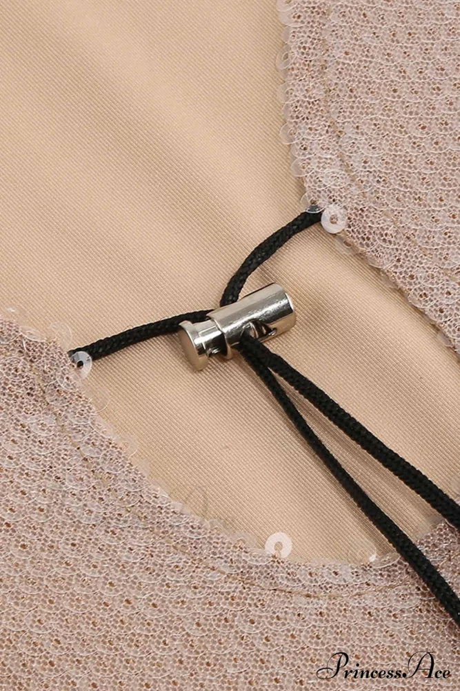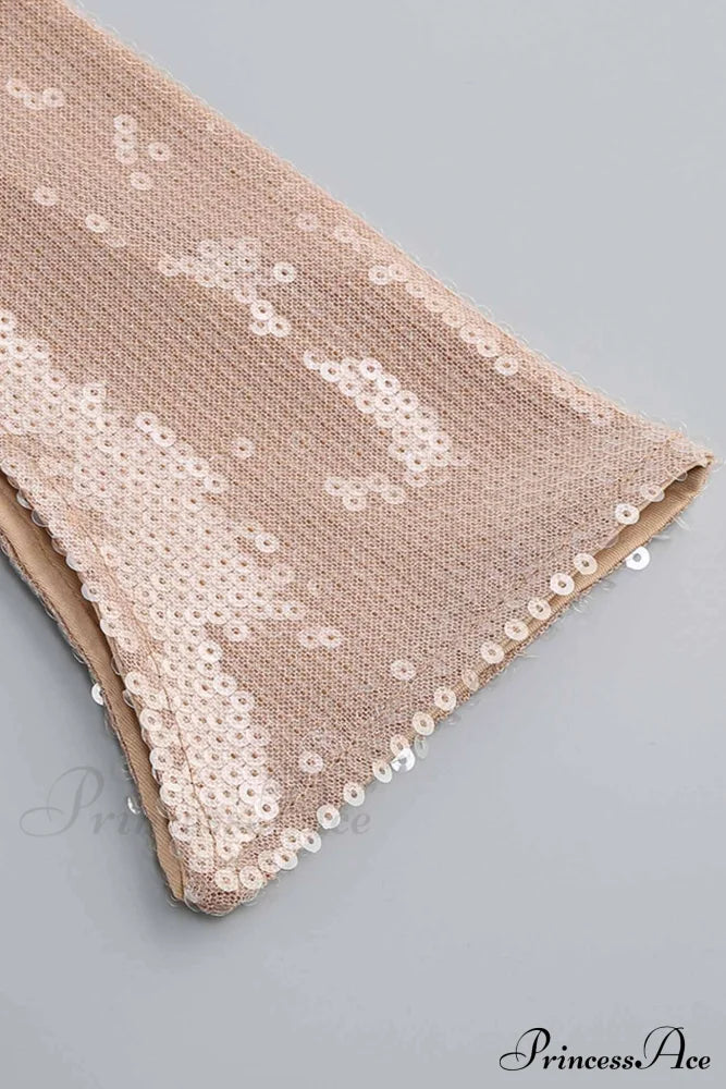 Sequins V Neck Flares Sleeve Pack Hip Dress