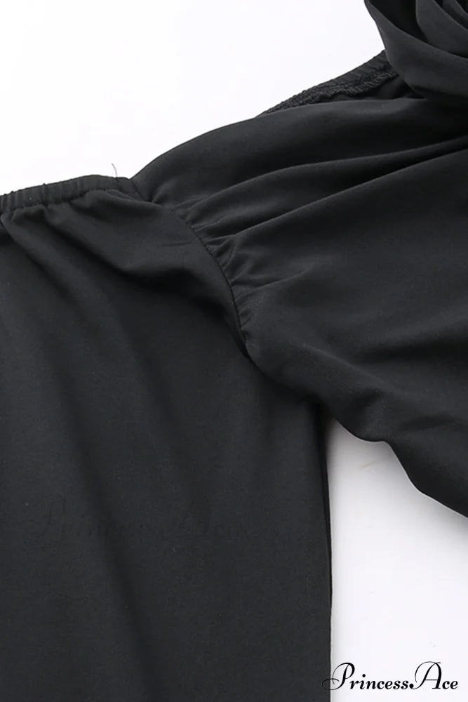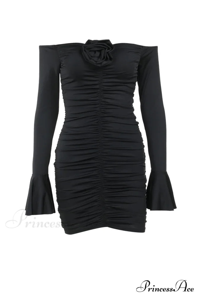 Off-Shoulder Dress with Flares Sleeves and Floral Gathered Design