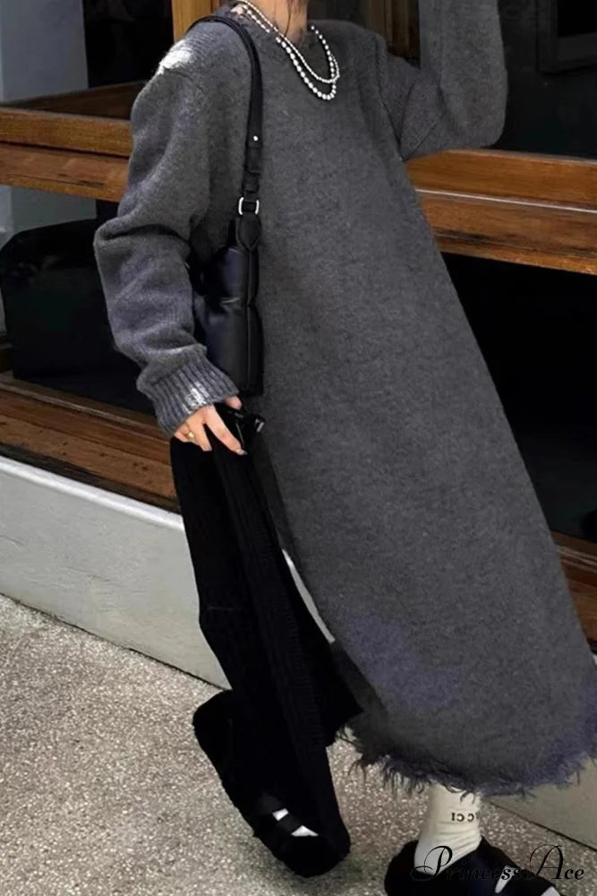 Distressed Raw Edge Knit Dress