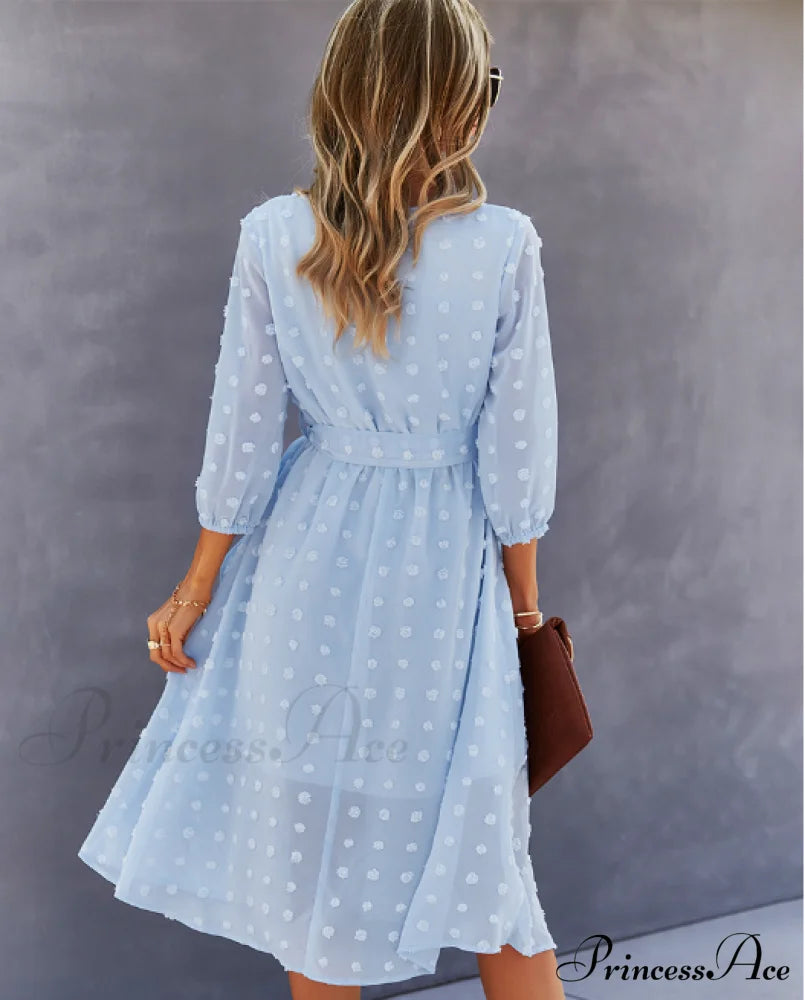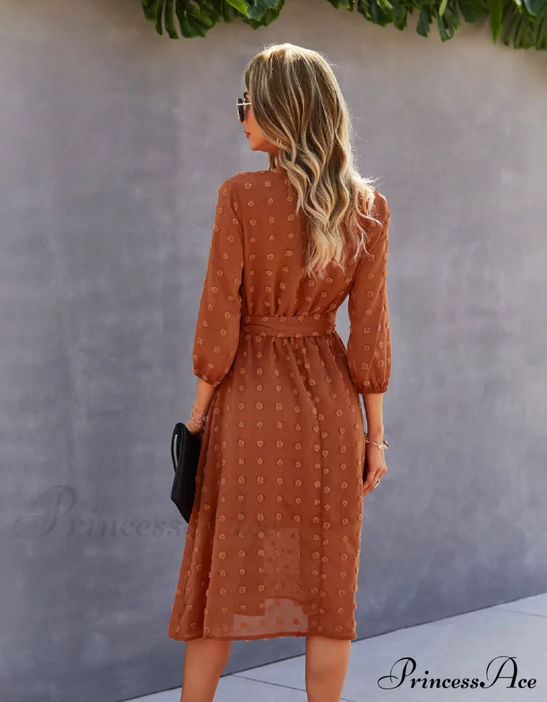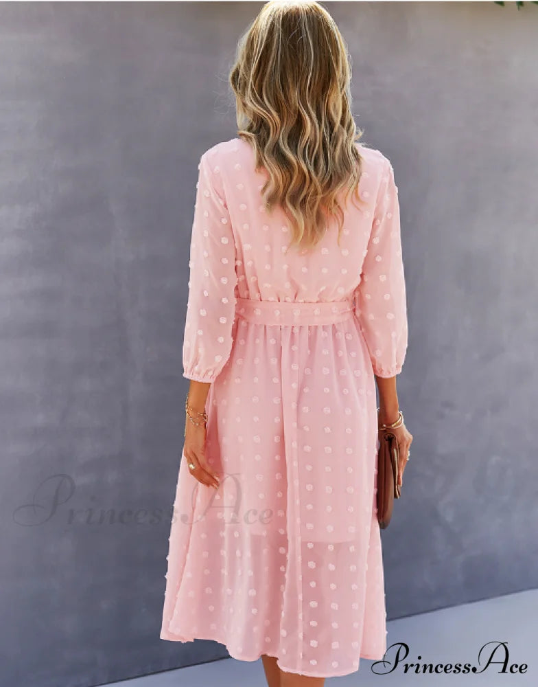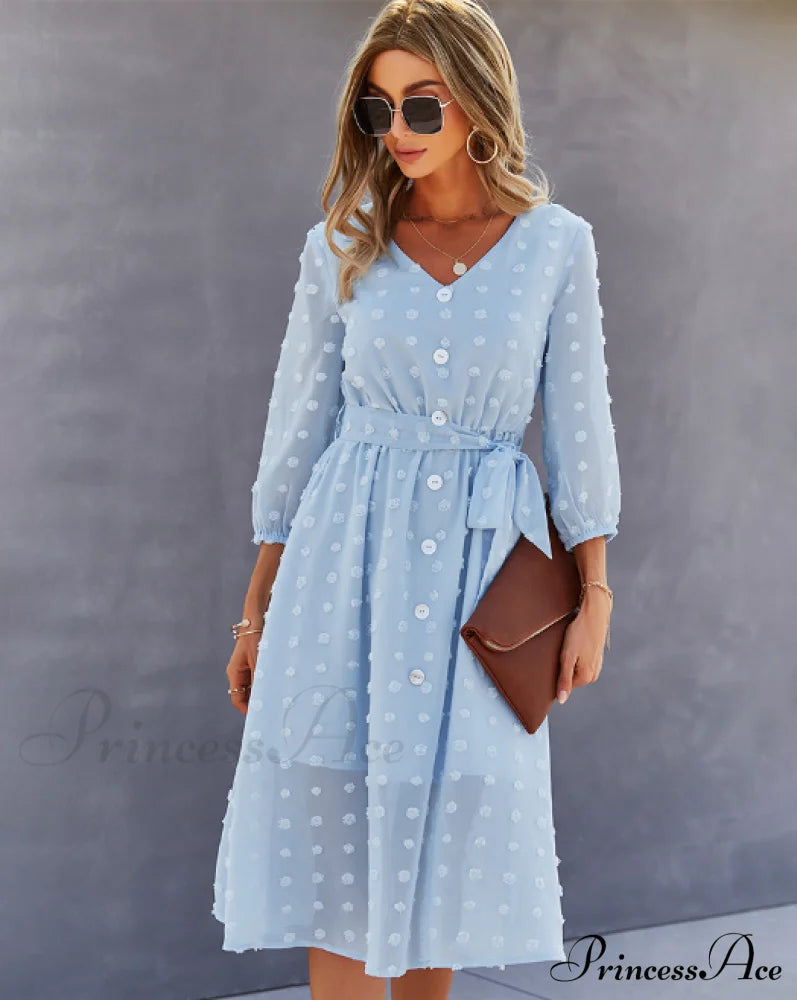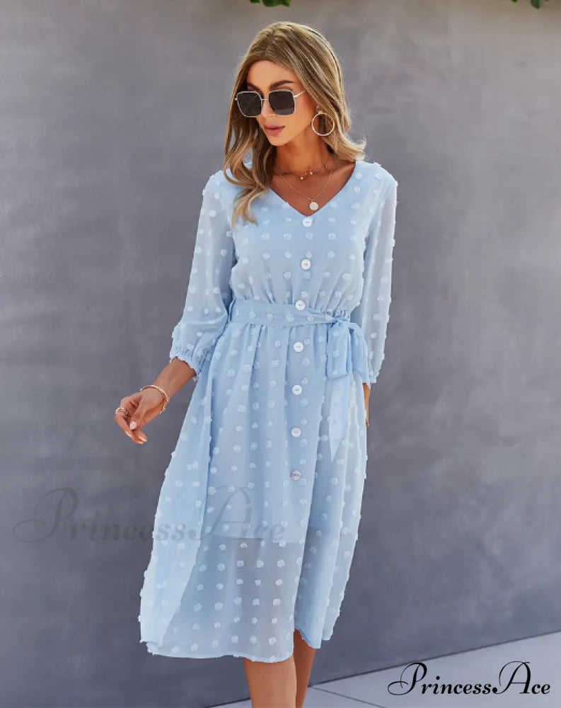 Elegant Half Sleeve Women's Casual V-neck Midi Dress with Buttons